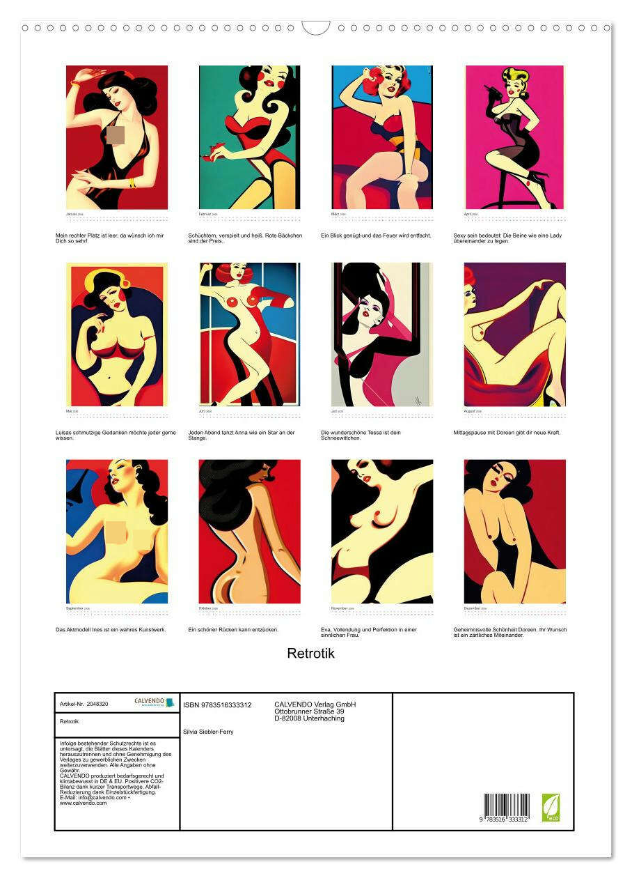 Damals wie heute blicken wir auf wunderschöne Frauen, die ihre Vorzüge geschickt in Szene setzen. Die Autorin Silvia Siebler-Ferry liebt es, mit Farben, Motiven und Themen zu jonglieren. Ein moderner, einladender Kalender zeigt Frauen wie sie sind. Wunderschön...