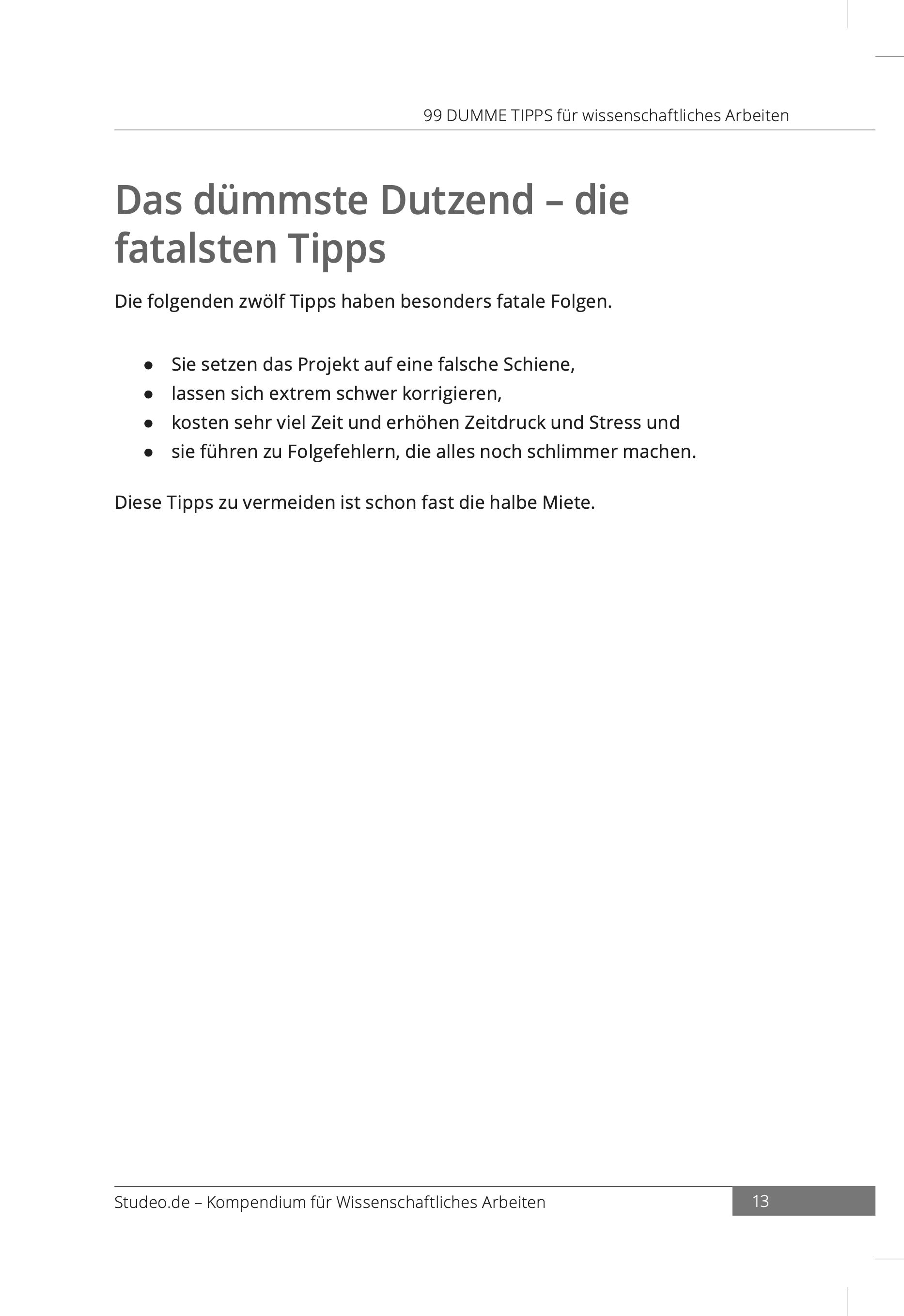 Das Buch 99 dumme Tipps für wissenschaftliches Arbeiten ist ein inverser Ratgeber zur Vermeidung gravierender Fehler in der Hausarbeit, Bachelorarbeit, Masterarbeit und Dissertation. Jeder Tipp basiert auf einer scheinbar vernünftigen Annahme, einem guten Geda...