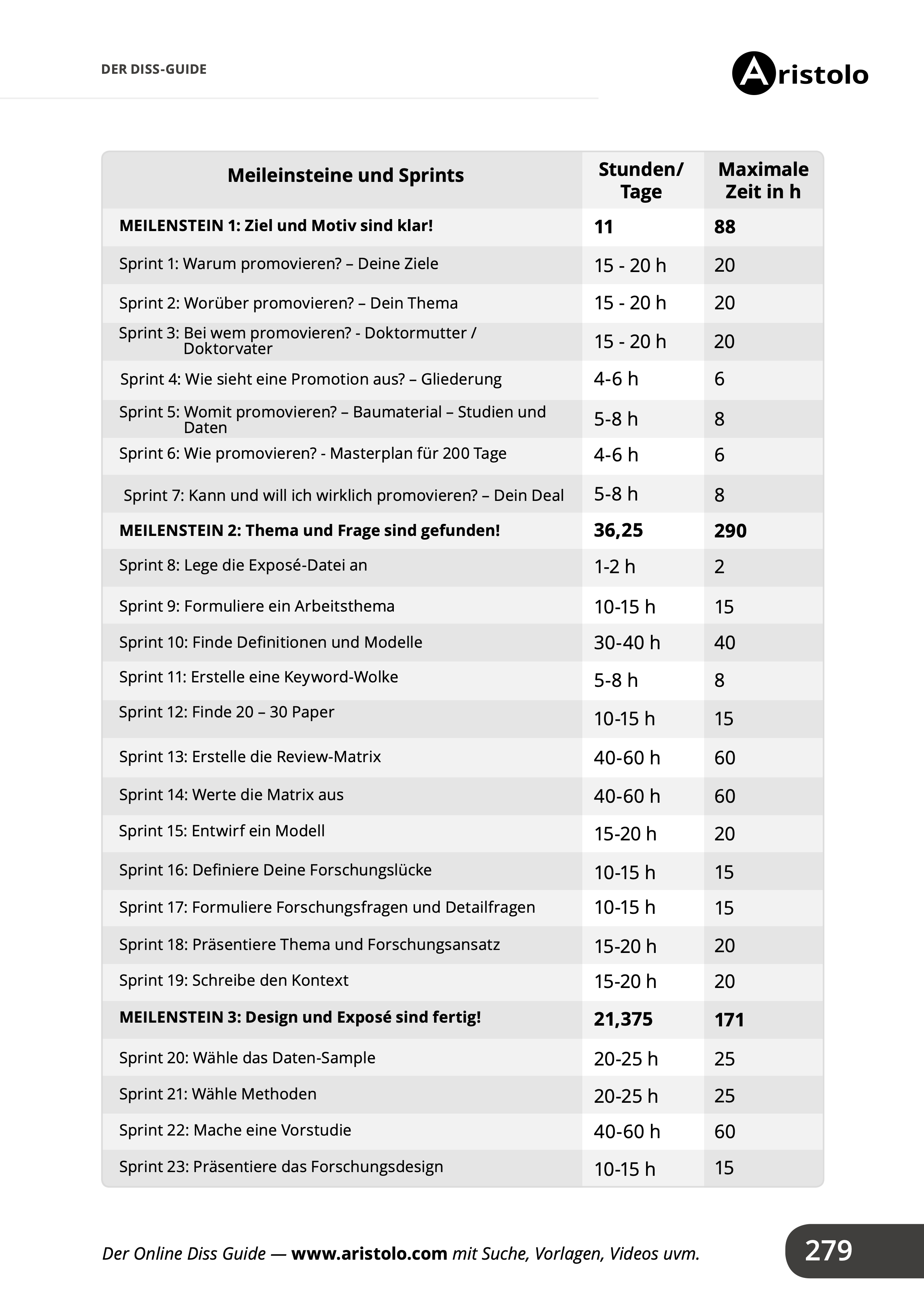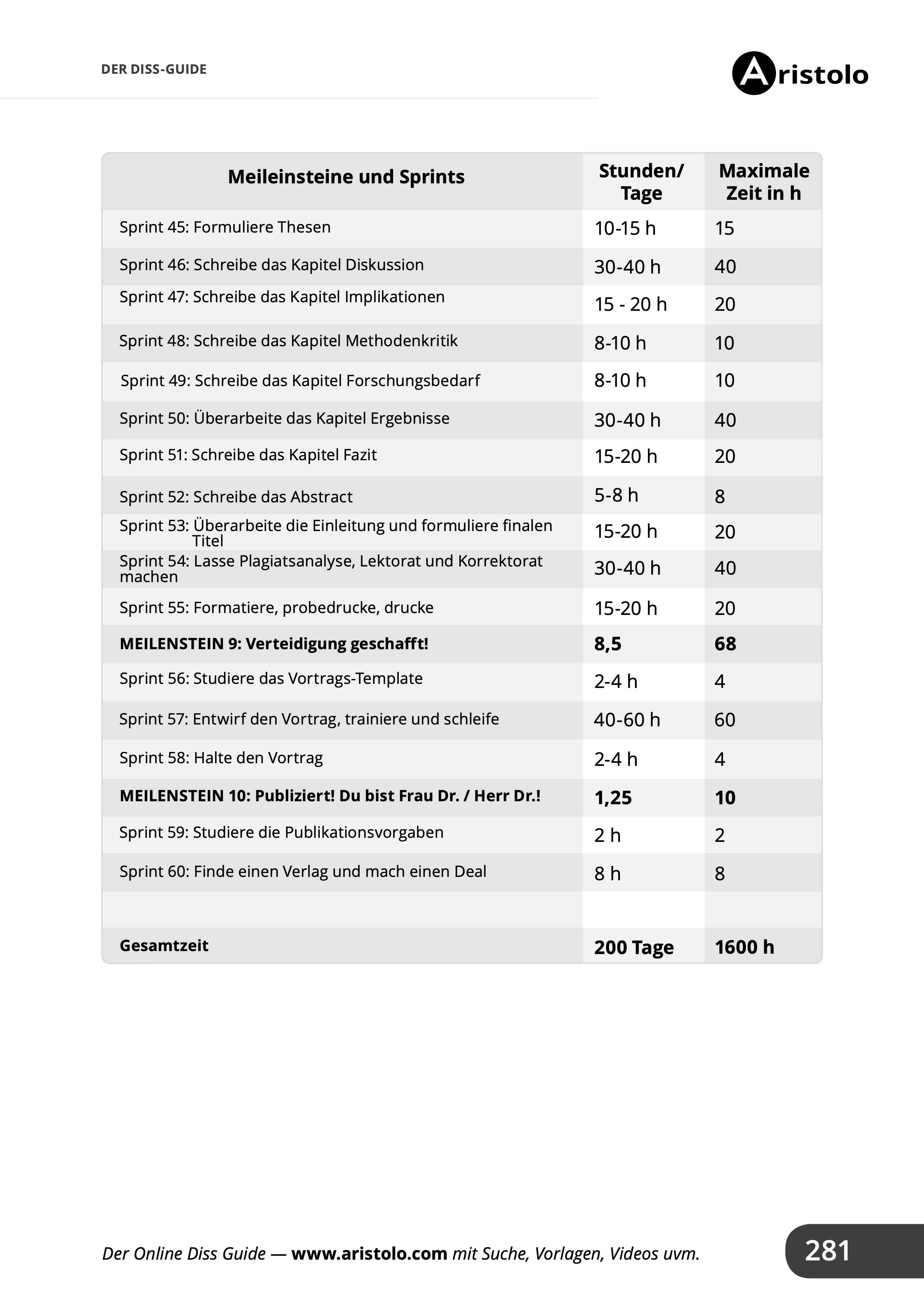 In 200 Tagen fertig mit der Dissertation. Das sind bei 2 Tagen oder 16 Stunden pro Woche nur 2 Jahre... Der Diss-Guide gliedert das Projekt in machbare Teilprojekte, mit 10 Meilensteinen und 60 Sprints. Jeder Schritt ist ergebnisorientiert und führt entweder z...