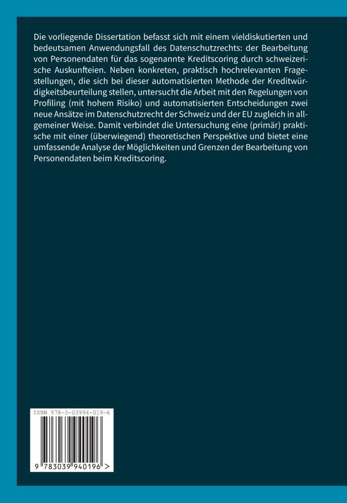 Die vorliegende Publikation befasst sich mit einem viel diskutierten und bedeutsamen Anwendungsfall des Datenschutzrechts: der Bearbeitung von Personendaten für das sogenannte Kreditscoring durch schweizerische Auskunfteien. Neben konkreten, praktisch hochrele...