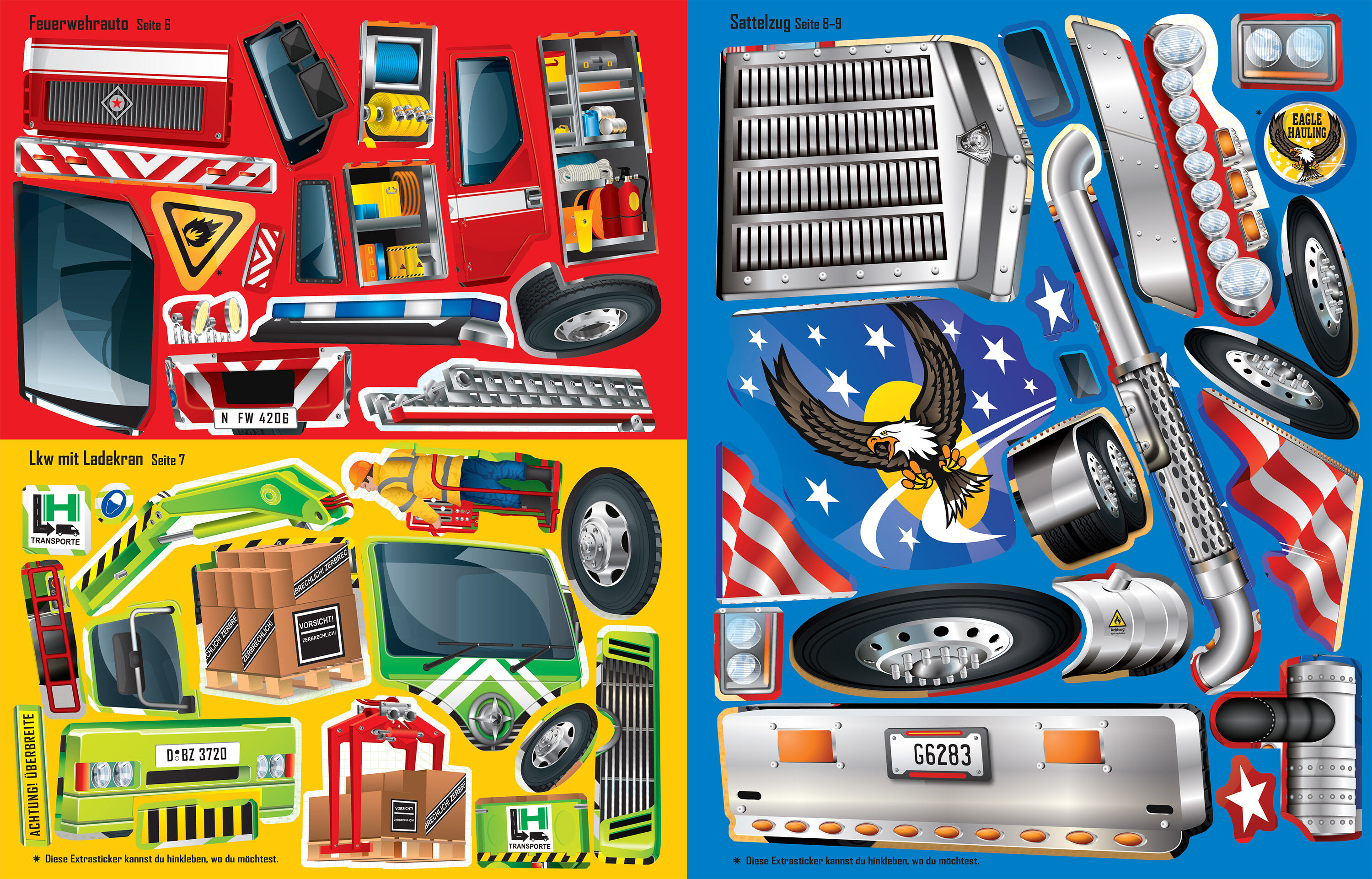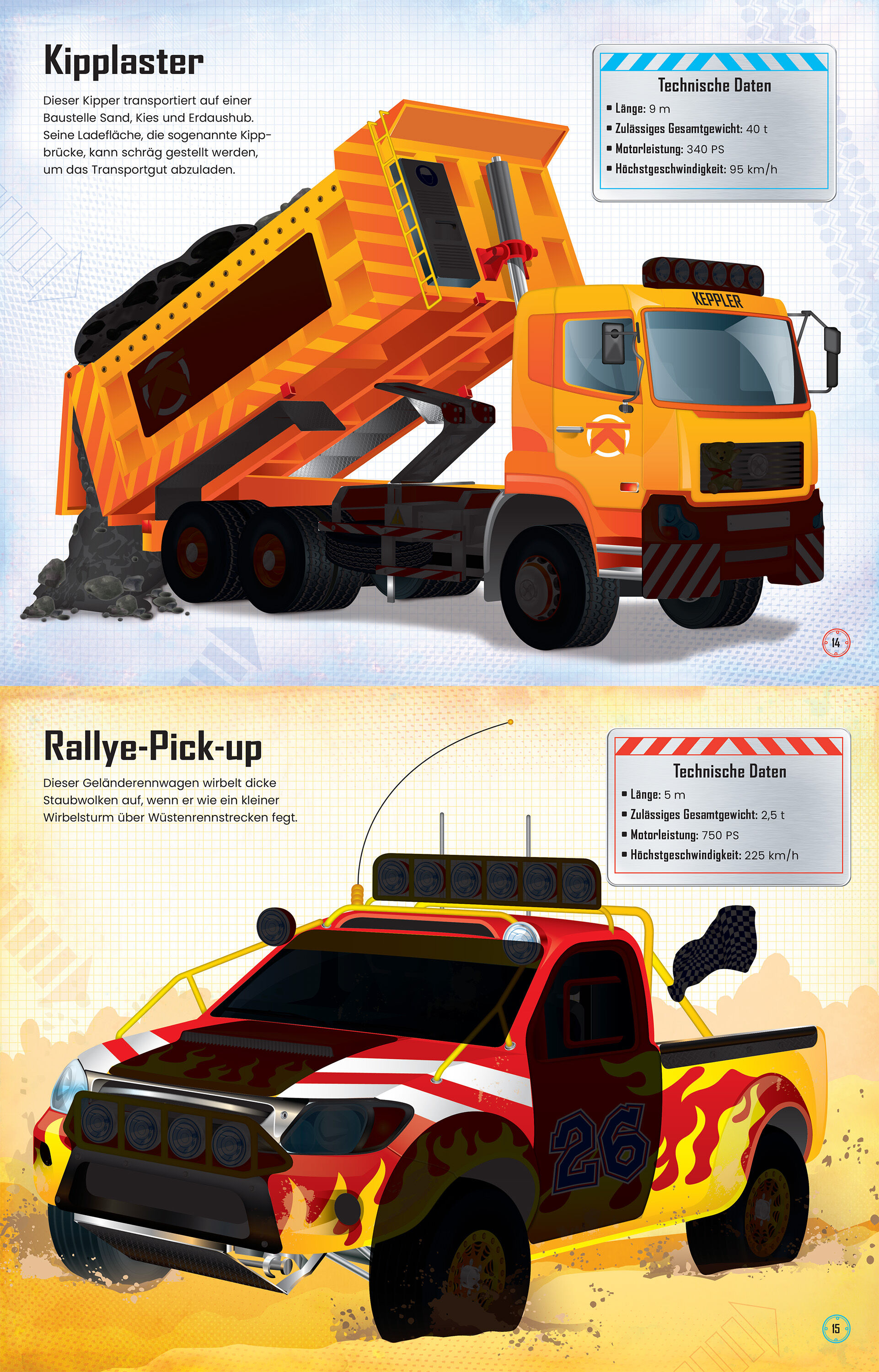 Ob Sattelzug, Muldenkipper oder Lkw mit Düsenantrieb hier kannst du die lautesten, schwersten und leistungsstärksten Trucks der Welt mit über 300 Stickern fertig ausstatten. Zu jedem Modell erfährst du außerdem die wichtigsten technischen Daten. Vom Monster-Tr...