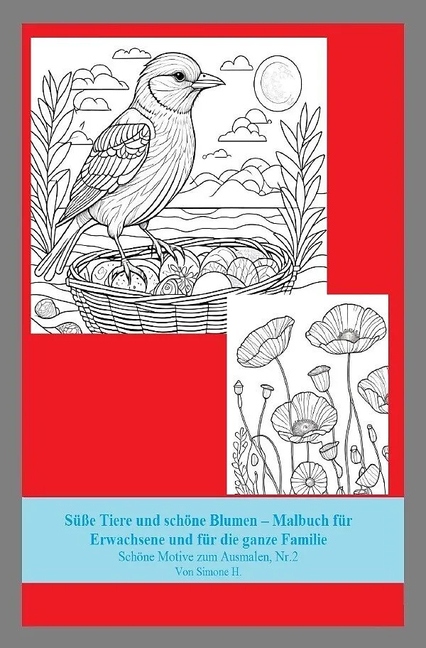 Süße Tiere und schöne Blumen Malbuch für Erwachsene und für die ganze Familie Schöne Motive zum Ausmalen, Nr.2 Von Simone H. Autorentext Bereits in der Schule hat sie gerne Geschichten geschrieben und veröffentlicht jetzt als Self-Publisher, sie hat einen Stud...