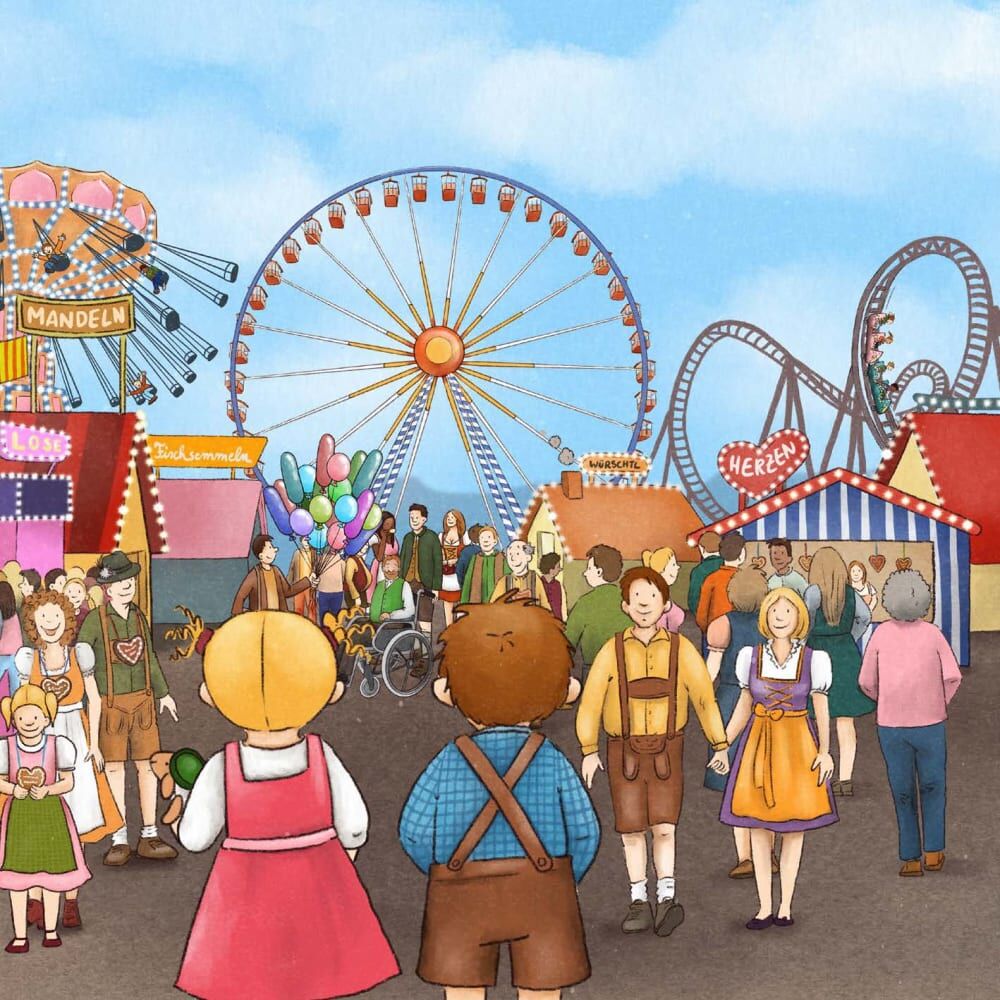 Das Münchner Oktoberfest entdecken: Emma und Paul erkunden in dieser Geschichte für Kinder mit dem Schäfchen die Theresienwiese. Ab auf den Rummel! Mit Emma und Paul auf die Münchner Wiesn Fahrgeschäfte, leckeres Essen und jede Menge Trubel: Auf dem Oktoberfes...