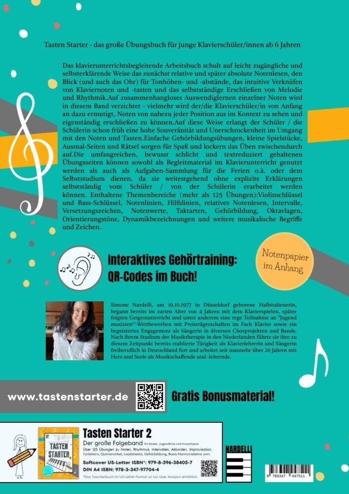 Tasten Starter 1 - im DIN A4 Format. Das klavierunterrichtsbegleitende Arbeitsbuch "Tasten Starter Band 1" schult auf leicht zugängliche und selbsterklärende Weise das zunächst relative und später absolute Notenlesen, den Blick (und auch das Ohr) für Tonhöhen-...