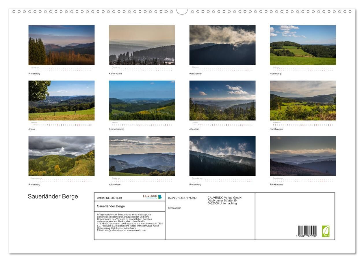 Sauerländer Berge (Wandkalender 2026 DIN A2 quer), CALVENDO Monatskalender