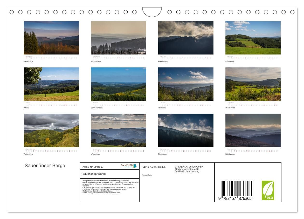 Sauerländer Berge (Wandkalender 2026 DIN A4 quer), CALVENDO Monatskalender
