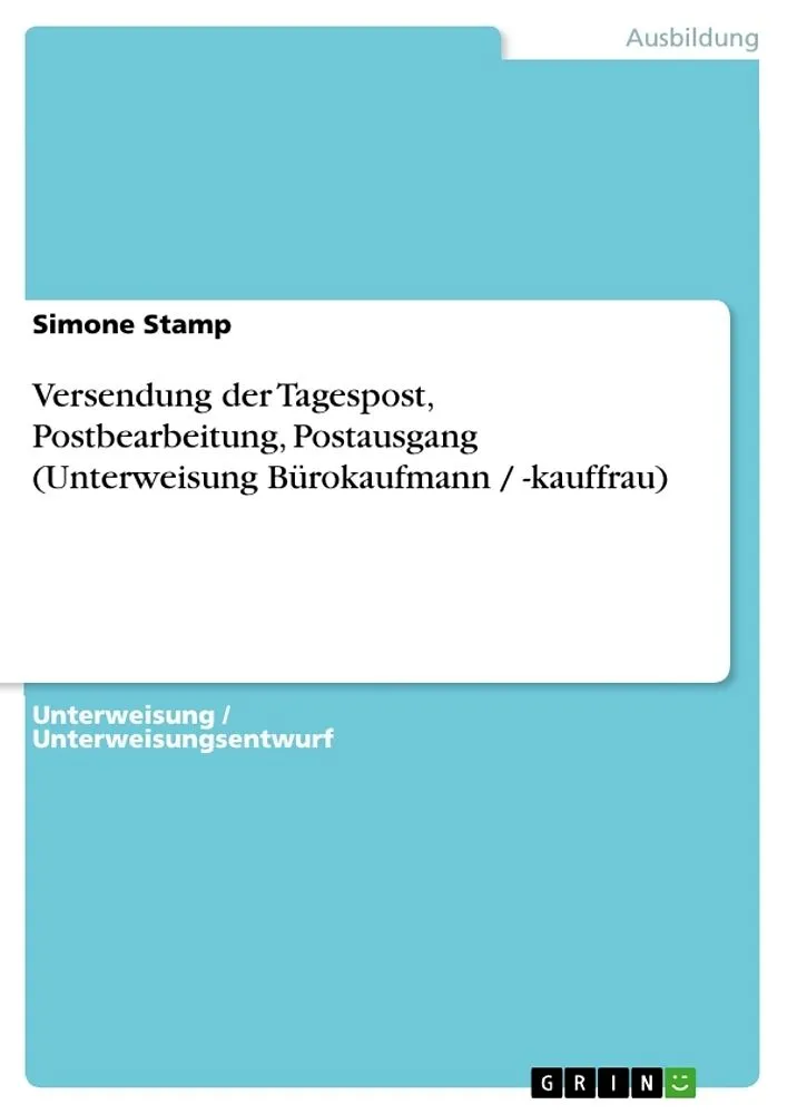 Unterweisung / Unterweisungsentwurf aus dem Jahr 2008 im Fachbereich AdA Kaufmännische Berufe / Verwaltung, Note: 2,00, , Veranstaltung: ADA-Prüfung , Sprache: Deutsch, Abstract: Im Ausbildungsrahmenplan des/r Bürokaufmanns-/frau ist die Postbearbeitung als Au...