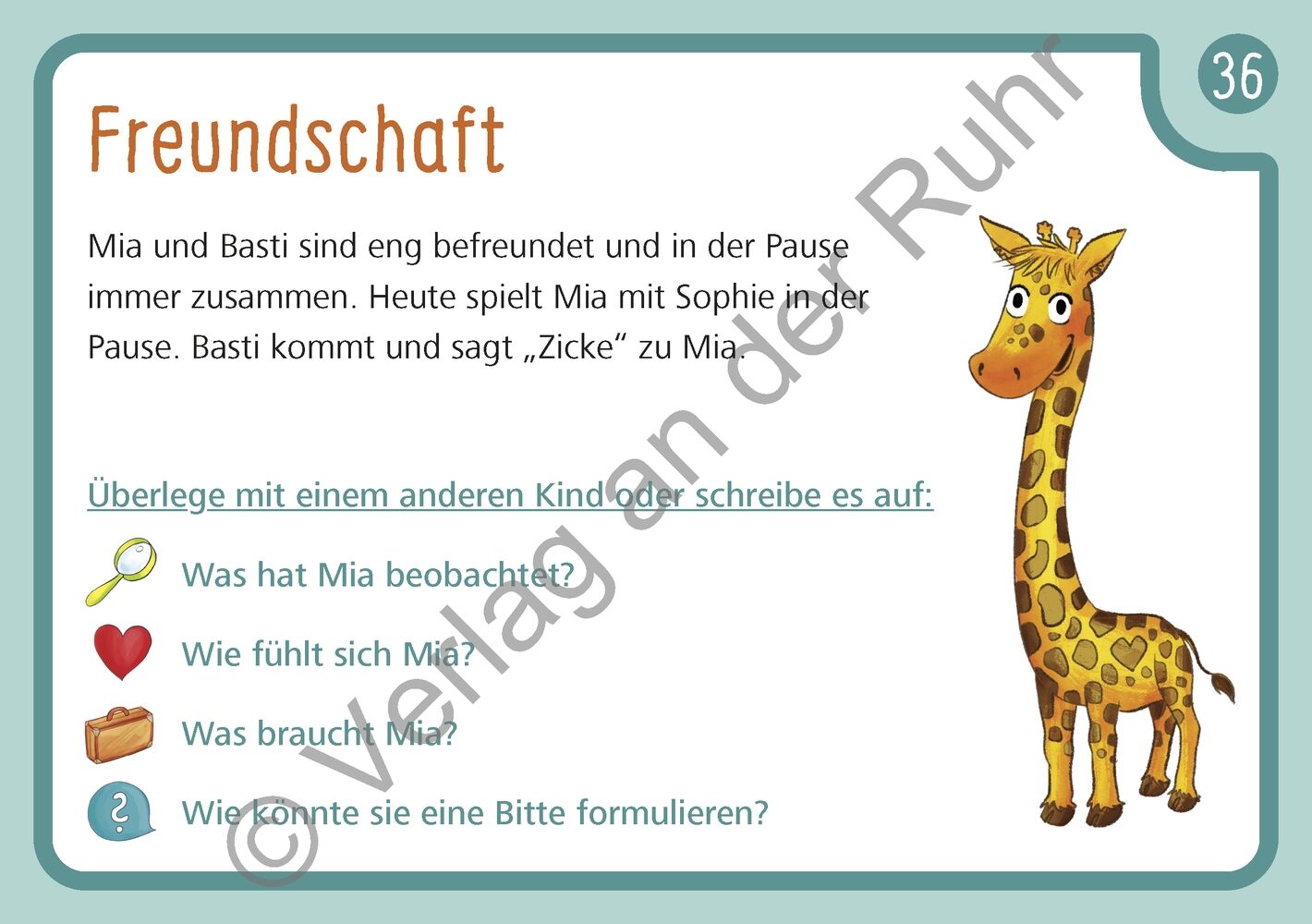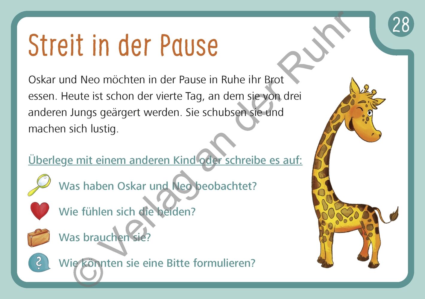 Unterrichtsmaterial für Lehrer und Lehrerinnen an Grund- und Förderschulen, Klasse 2-4 +++ Unsere Giraffen-Kartei Kinder üben selbstständig gewaltfreie Kommunikation mit der Giraffensprache Streit und Konflikte lassen sich oft mit den richtigen Worten lösen u...