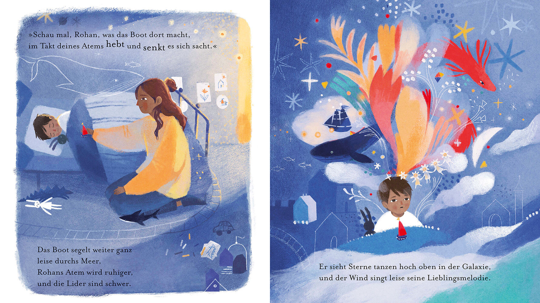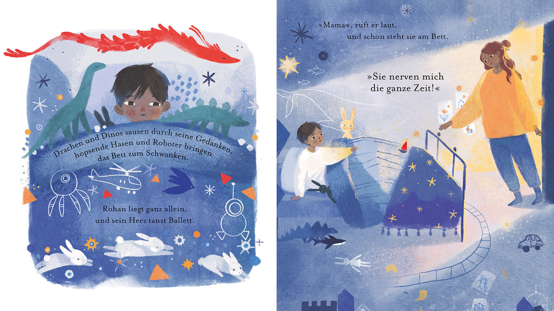 Ein sanftes Bilderbuch, um gemeinsam zu entspannen, den Alltag loszulassen und friedlich zur Ruhe zu kommen Drachen und Dinos, hopsende Hasen und Roboter Die Aufregungen des Tages sausen Rohan abends durch den Kopf und sein Herz tanzt aufgeregt. Doch seine Mu...