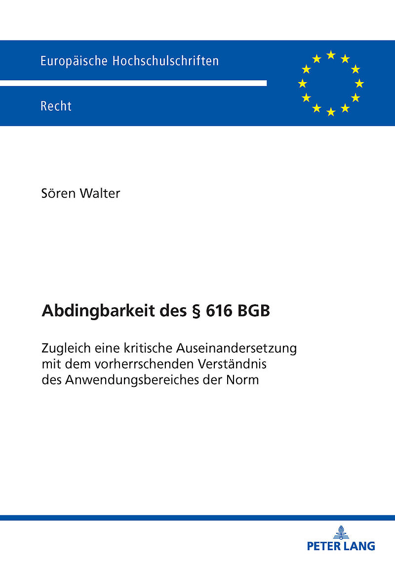 Die Dissertation befasst sich mit der Möglichkeit der Abdingbarkeit des 616 BGB insbesondere mit Blick auf das AGB-Recht. Diese insbesondere in der COVID-19-Pandemie in den Fokus gerückte Frage ist besonders für die Praxis der Vertragsgestaltung relevant. Der...