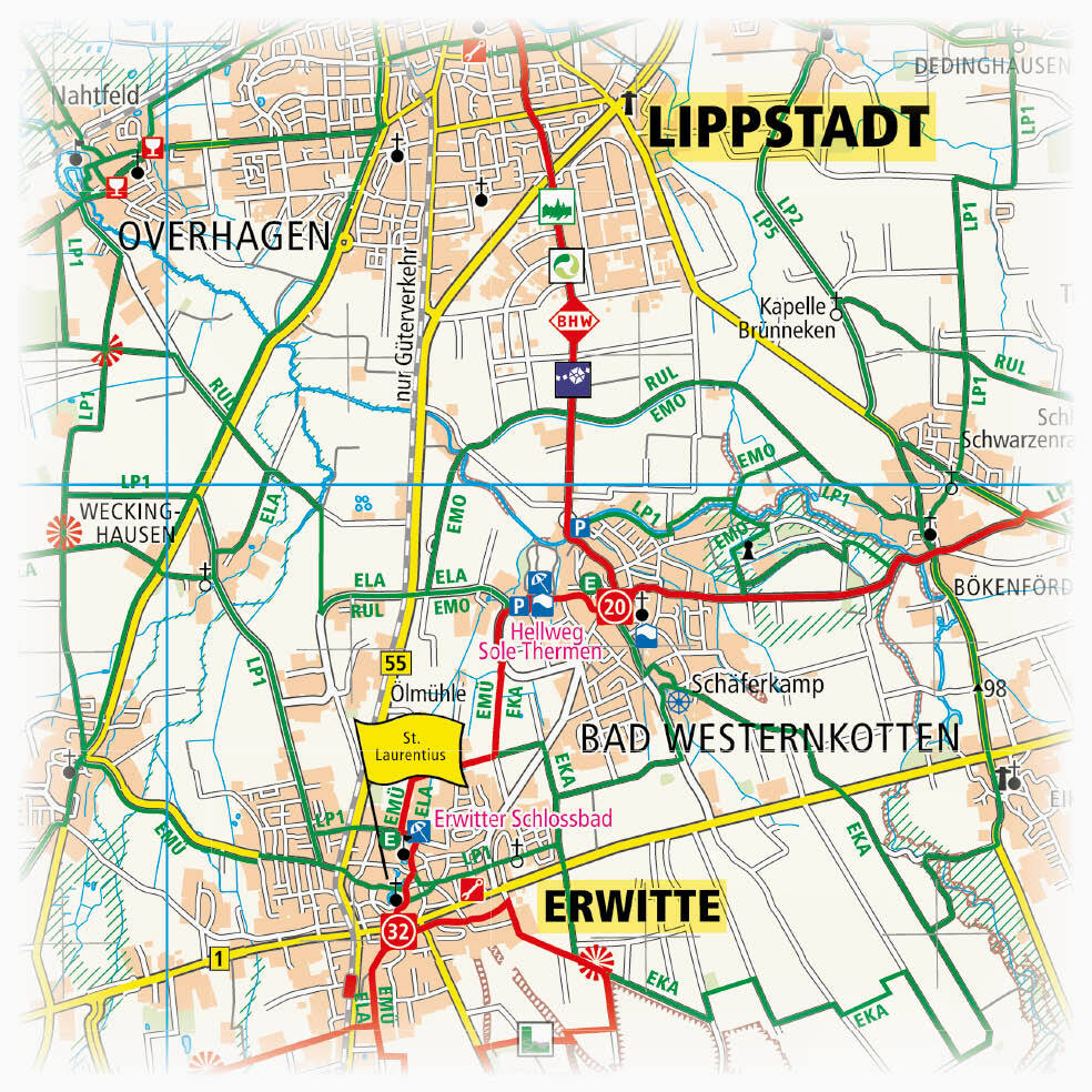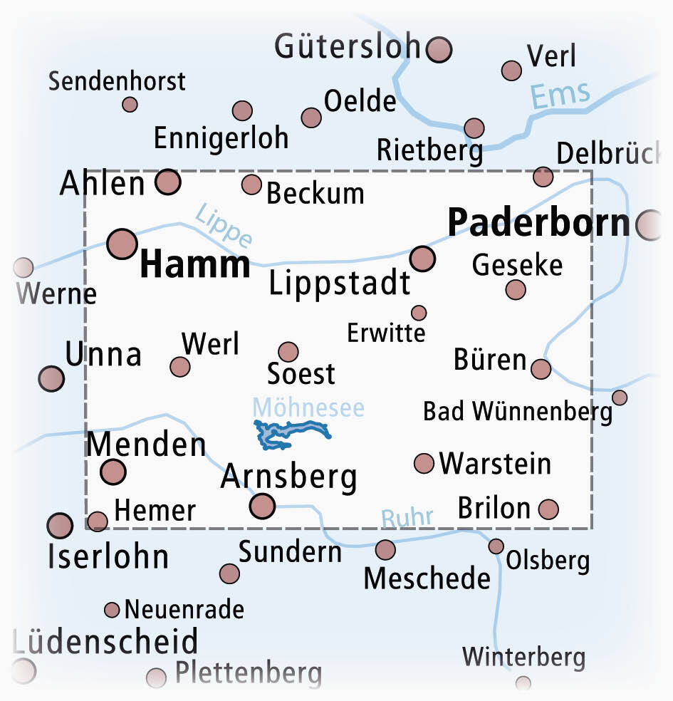 Die Radkarte Soest und Umgebung beschreibt sowohl Fernradwege als auch regionale Touren, die vorgestellt werden. Die Region ist geprägt von der alten Heeres- und Handelsstraße, dem Hellweg, heute B1, die in West-Ost-Richtung das Ruhrgebiet mit Ostwestfalen ver...
