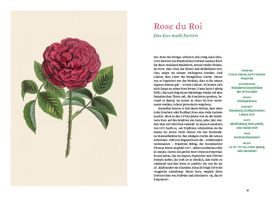 Rosa mundi, Souvenir de la Malmaison, Frau Karl Druschki die mal klangvollen, mal kuriosen Namen alter Rosen beschwören vergangene Zeitalter herauf: die Klostergärten des Mittelalters, die Rosensammlung von Kaiserin Joséphine, das Rosenfieber der vorletzten Ja...