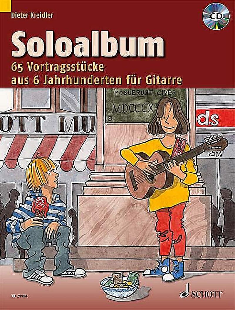 Diese abwechslungsreiche Sammlung von leichten Solostücken ist eine wahre Fundgrube und enthält Klassiker der Gitarrenliteratur aus allen Epochen. Die große stilistische Auswahl reicht von berühmten Werken aus Renaissance, Barock, Klassik und Romantik bis zur ...Diese abwechslungsreiche Sammlung von leichten Solostücken ist eine wahre Fundgrube und enthält Klassiker der Gitarrenliteratur aus allen Epochen. Die große stilistische Auswahl reicht von berühmten Werken aus Renaissance, Barock, Klassik und Romantik bis zur Musik des 21. Jahrhunderts. Arrangements populärer Stücke runden das Spektrum ab. Der Schwierigkeitsgrad reicht von ganz leicht bis hin zu mittelschwer. So kann das Soloalbum ergänzend zu jedem Unterrichtswerk eingesetzt werden, bietet aber auch für Freizeit und Konzert alles, was Gitarristen gerne spielen. Besetzung: Gitarre