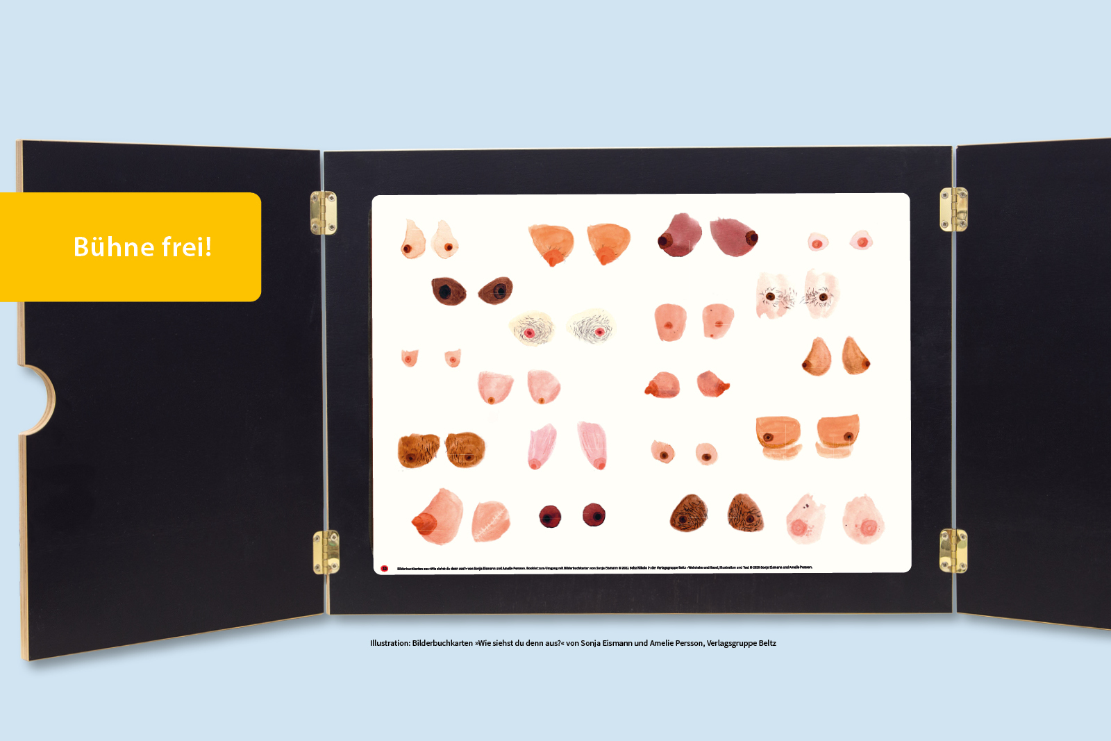 Schon kleine Kinder werden von Idealbildern des menschlichen Körpers geprägt. Doch wo sehen sie überhaupt echte Körper? Die Bilderbuchkarten zum Sachbilderbuch »Wie siehst du denn aus?« von Sonja Eismann und Amelie Persson zeigen offenherzige Aquarellillustrat...