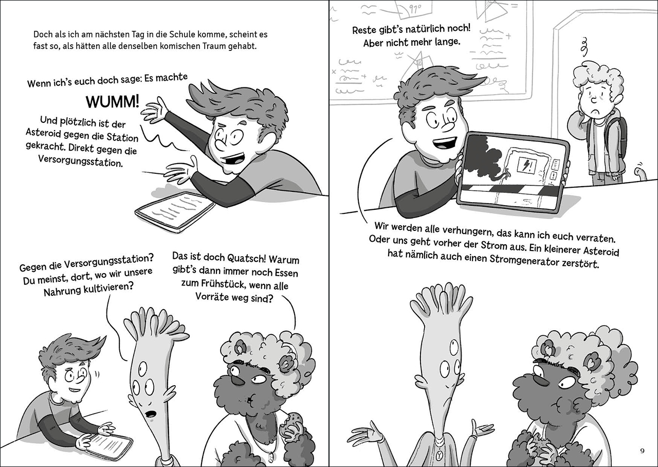 Ned und Anna besuchen die Weltraumschule doch auch im Weltraum gibt es jede Menge Hausaufgaben, nervige Lehrer und Langeweile! Bis eines Tages WUMM! Ein Asteroid hat die Versorgungsabteilung der Weltraumstation schwer beschädigt. Deswegen muss jetzt Strom gesp...