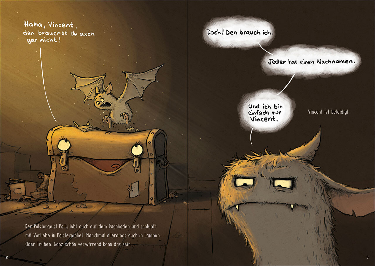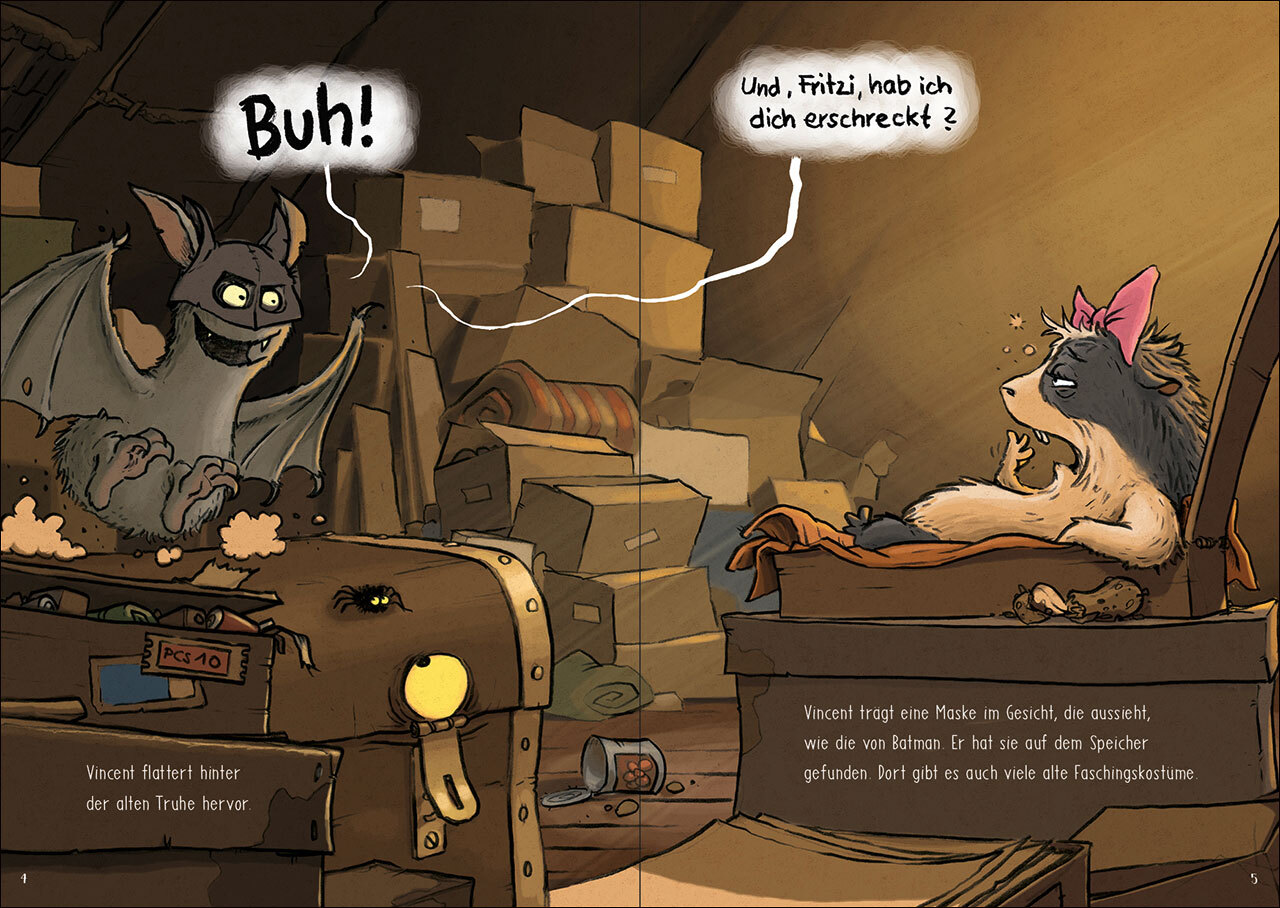 Die beliebte Fledermaus Vincent aus Sonja Kaiblingers Büchern Scary Harry flattert in das zweite Abenteuer ihrer eigenen Kinderbuchreihe ! In diesem Band erfahren Kinder ab 7 Jahren in einer durchgehend farbig illustrierten und gruselig-witzigen Geschichte , wie Halb-Geistertiere wie Vincent zu ihrer Superkraft kommen.