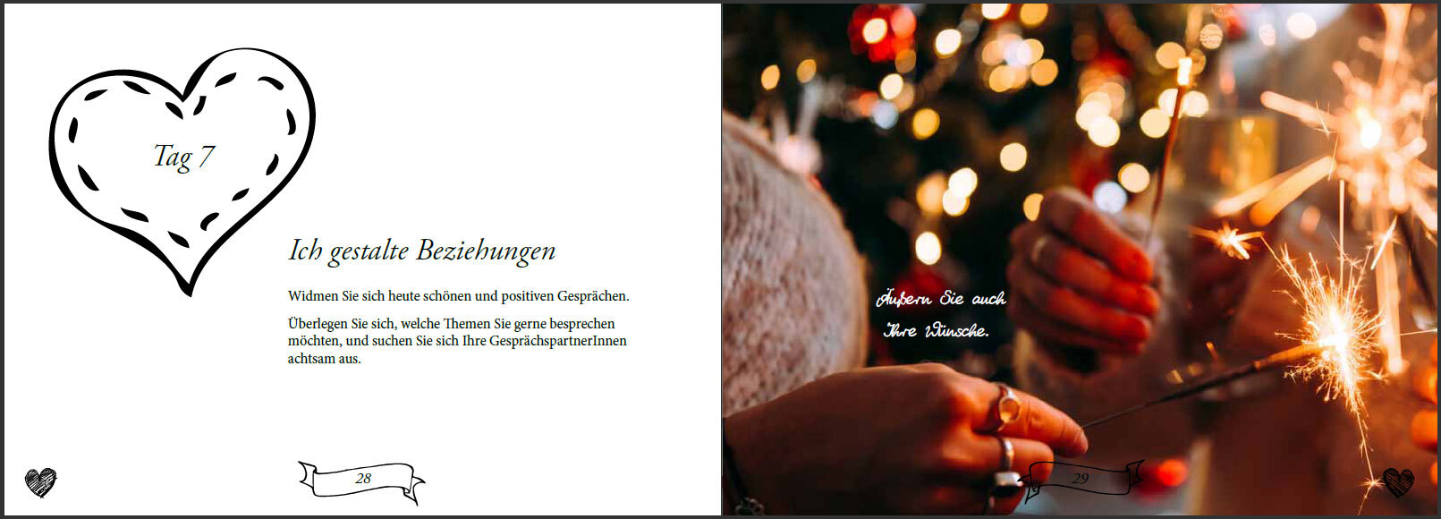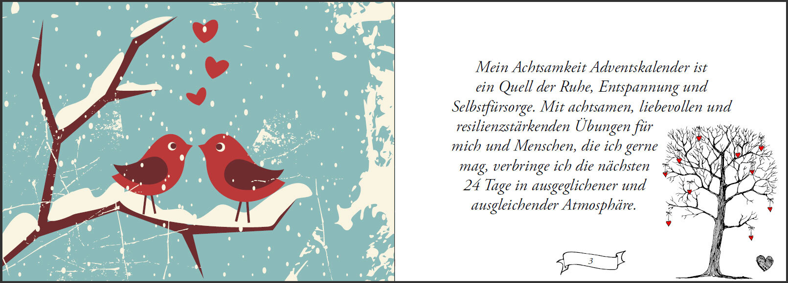 Mein Achtsamkeit Adventskalender ist ein Quell der Ruhe, Entspannung und Selbstfürsorge. Mit achtsamen, liebevollen und resilienzstärkenden Übungen für mich und Menschen, die ich gerne mag, verbringe ich die nächsten 24 Tage in ausgeglichener und ausgleichende...