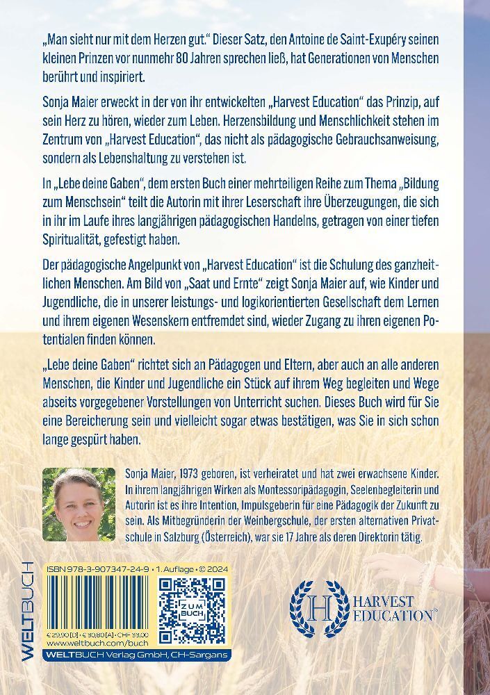Man sieht nur mit dem Herzen gut. Dieser Satz, den Antoine de Saint-Exupéry seinen kleinen Prinzen vor nunmehr 80 Jahren sprechen ließ, hat Generationen von Menschen berührt und inspiriert. Sonja Maier erweckt in der von ihr entwickelten Harvest Education das ...
