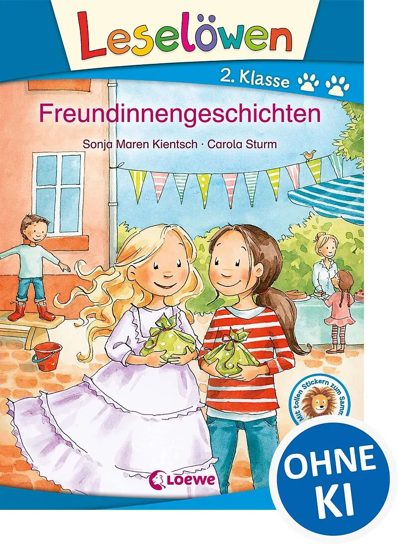 mit Spotlack und Stickerbogen Loewe-Bücher: garantiert ohne KI Juhu! Hanna übernachtet bei Nele und die beiden Freundinnen spielen Neles Eltern einen lustigen Streich. Auch Tine hat mit ihrer Freundin Lea etwas Besonderes vor: Sie will das Wettspiel beim Schul...