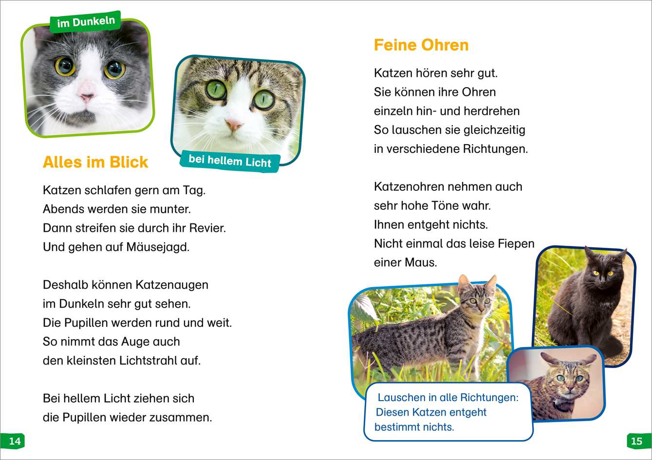 Tessloff WAS IST WAS Erstes Lesen easy! Band 10. Katzen - meine Lieblingstiere Katzen sind anmutige Tiere. Sie allein bestimmen, mit wem sie schmusen und spielen wollen. Wie die Katze zum Menschen kam, was ihr Wesen und Aussehen ausmacht und was sie braucht, u...