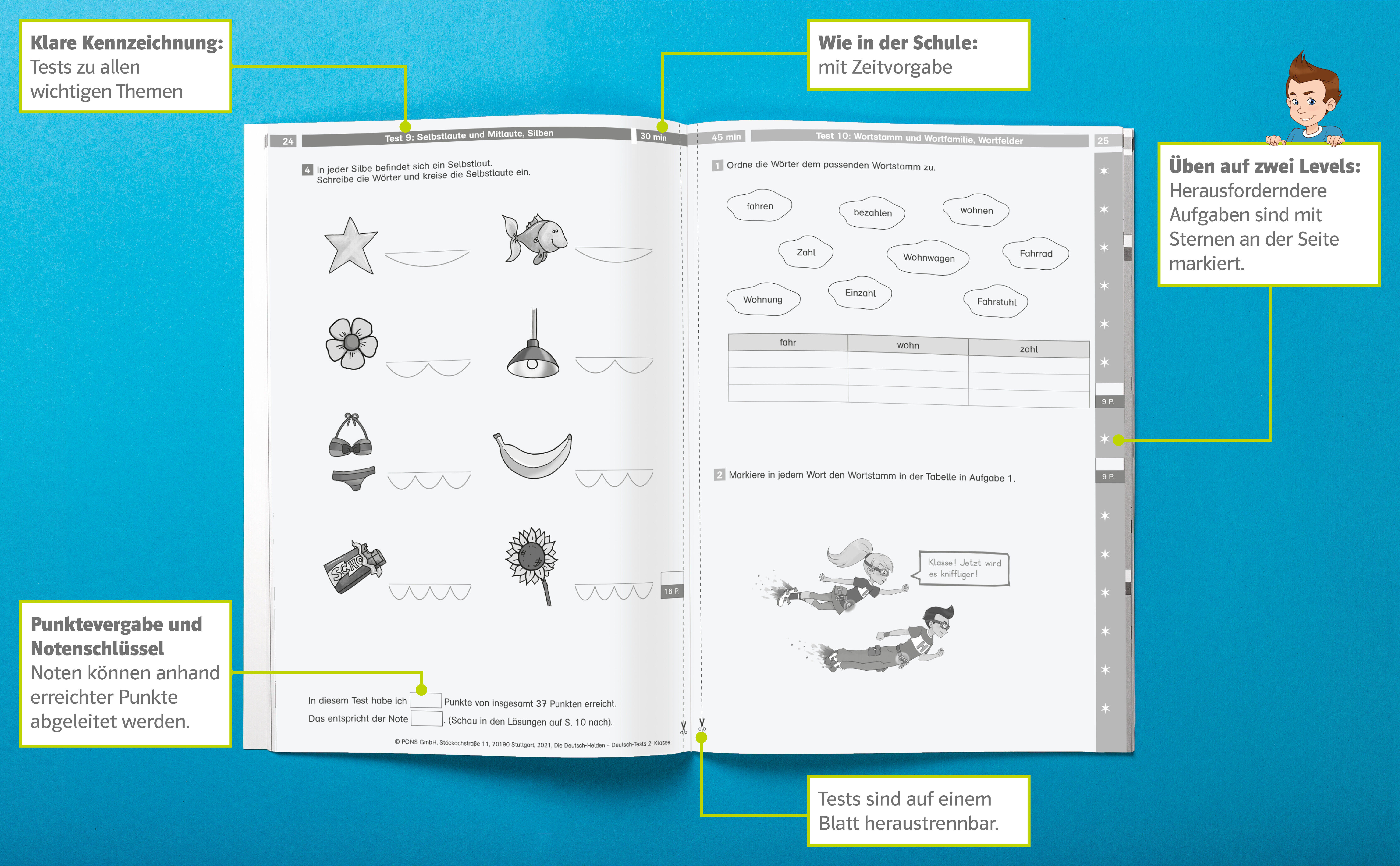 Mit diesem Deutsch Übungsheft für die 2. Klasse bereiten sich Kinder optimal auf Klassenarbeiten und Tests in Deutsch vor. In 28 Tests wie in der Grundschule können wichtige Themen aus dem Deutschunterricht geübt werden Alle wichtigen Themen werden behandelt:...