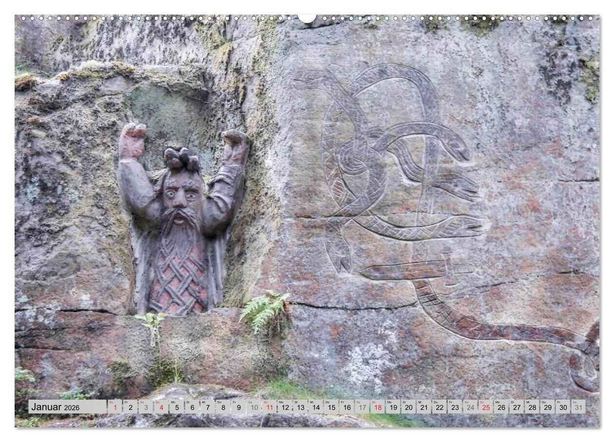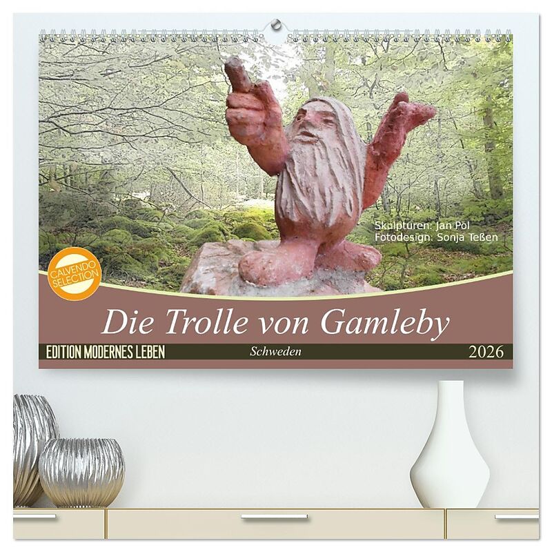 Die Trolle von Gamleby - Schweden - Skulpturen von Jan Pol (hochwertiger Premium Wandkalender 2026 DIN A2 quer), Kunstdruck in Hochglanz