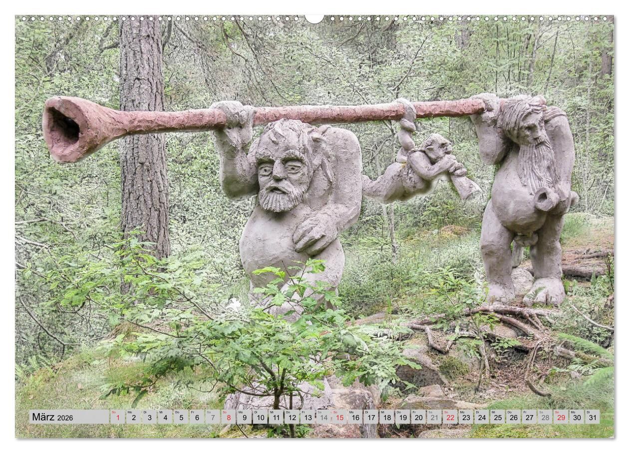 Die Trolle von Gamleby - Schweden - Skulpturen von Jan Pol (Wandkalender 2026 DIN A2 quer), CALVENDO Monatskalender