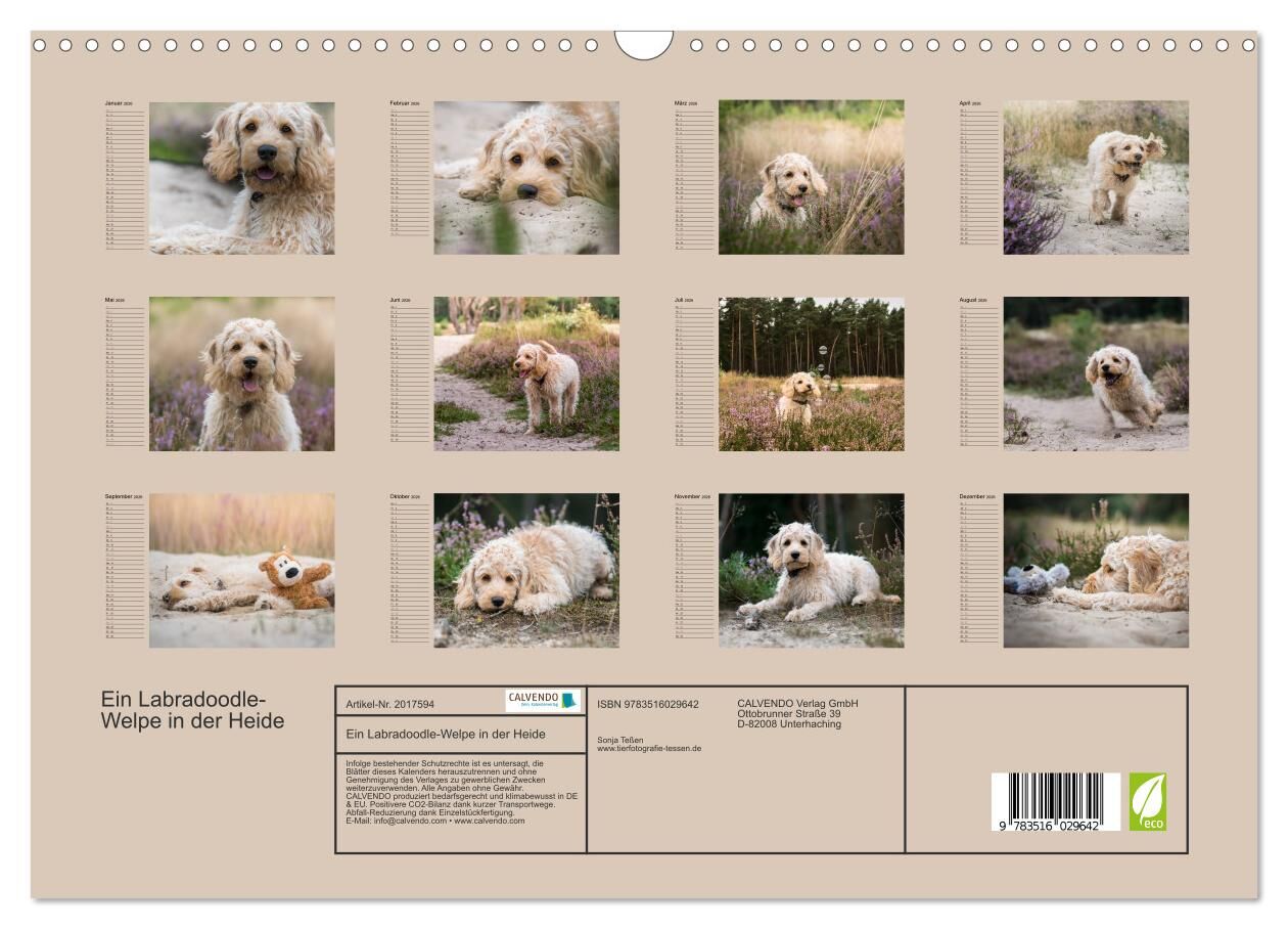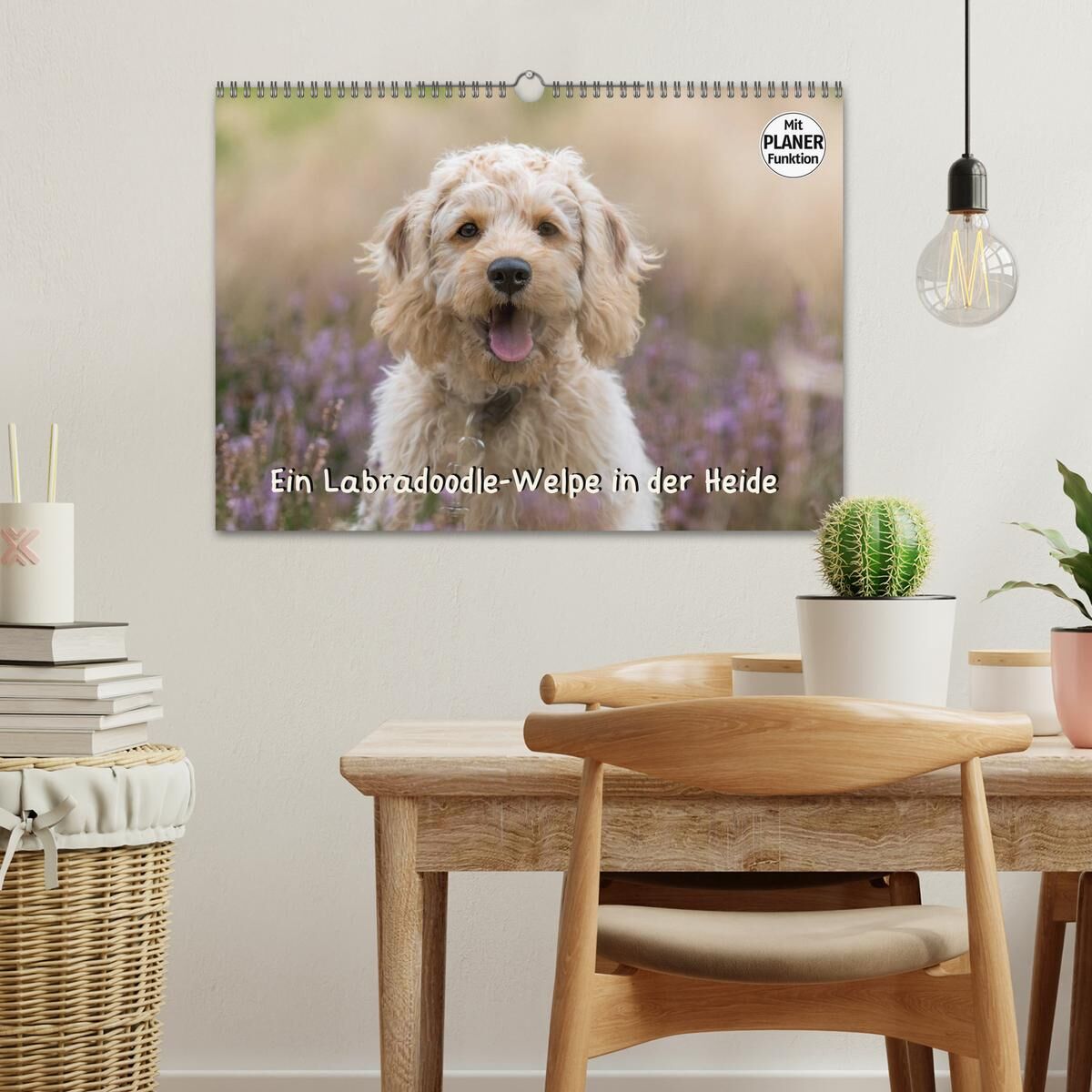 Ein Labradoodle-Welpe in der Heide (Wandkalender 2026 DIN A3 quer), CALVENDO Monatskalender