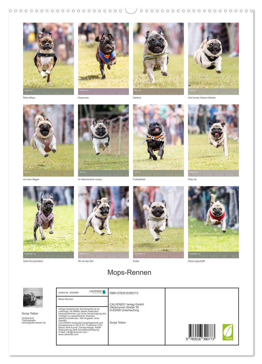 Auch Möpse können manchmal fliegen. Die Tierfotografin Sonja Teßen stellte aus Ihren Fotografien eines lokalen Mops-Rennens 12 ausgefallene Bilder für diesen Kalender zusammen. Entdecken Sie die sportliche Seite dieser Hunderasse. Es werden sowohl reinrassige ...