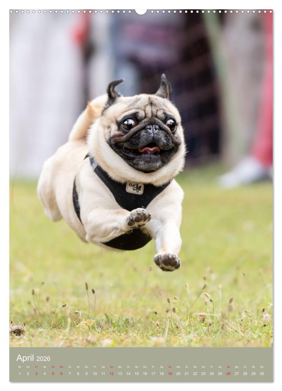Mops-Rennen (hochwertiger Premium Wandkalender 2026 DIN A2 hoch), Kunstdruck in Hochglanz