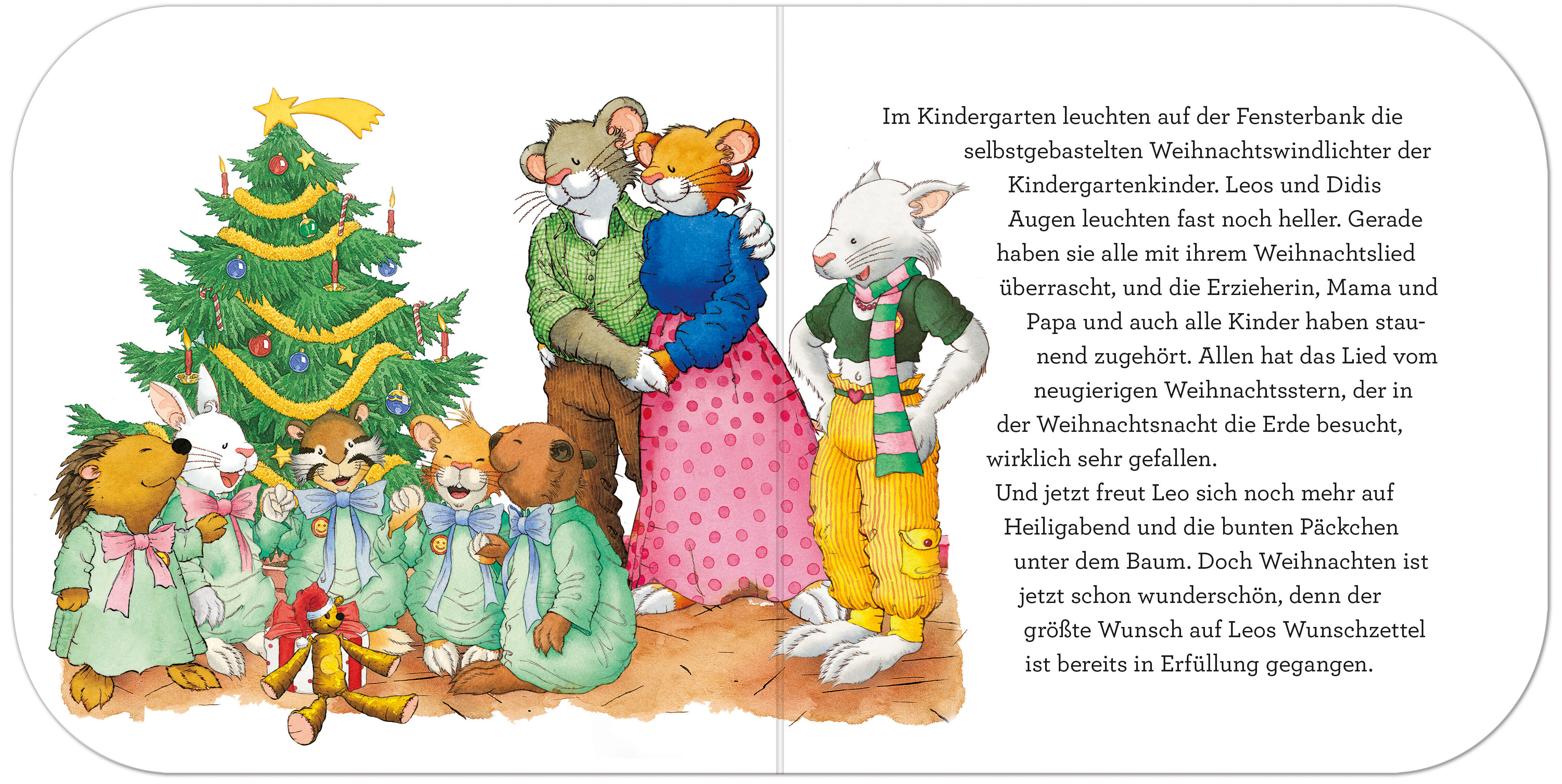 In "Leo Lausemaus und der Wunschzettel" kann Leo es kaum erwarten, dass Weihnachten endlich da ist! Eifrig malt er seinen Wunschzettel, auf dem ein neuer Malkasten und eine Jacke für seinen Teddy stehen. Doch dieses Jahr hat Leo einen ganz besonderen Wunsch: ...