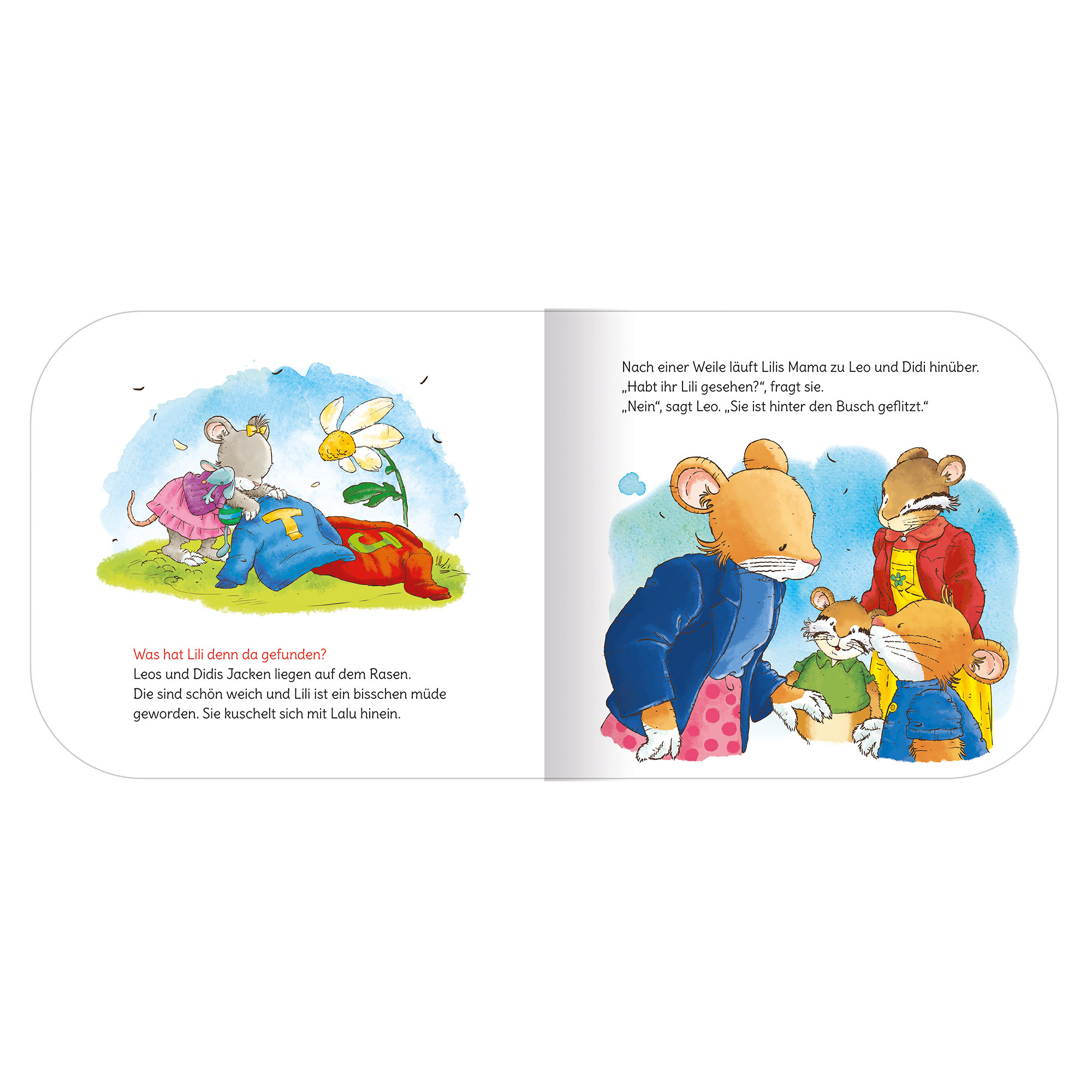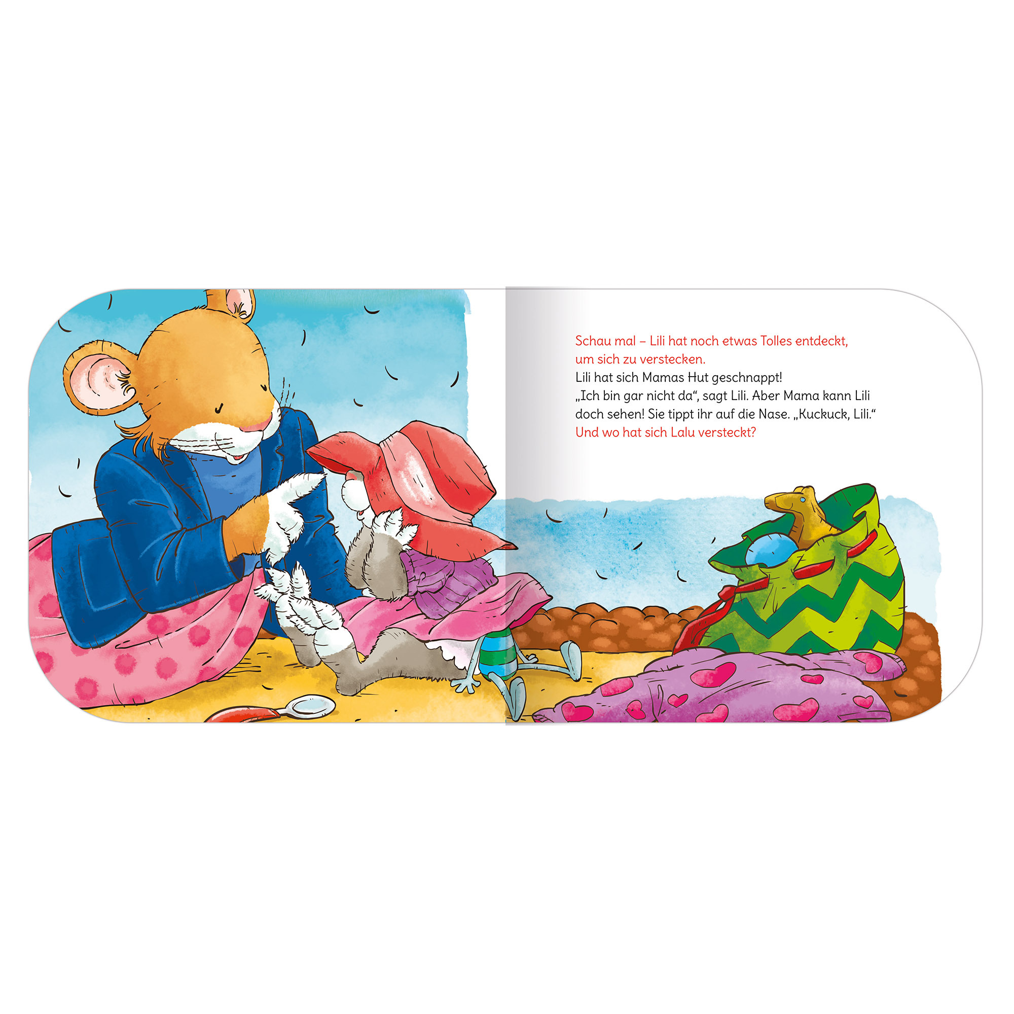Wo ist denn nur Lili? In dieser Geschichte ist Lili mit Mama und ihrem großen Bruder Leo im Park. Mit ihrer Kuschelmaus Lalu spielt Lili Verstecken. Sie versteckt sich hinter einer Serviette, unter Mamas Hut und im Gebüsch, aber Mama findet sie jedes Mal. Plö...