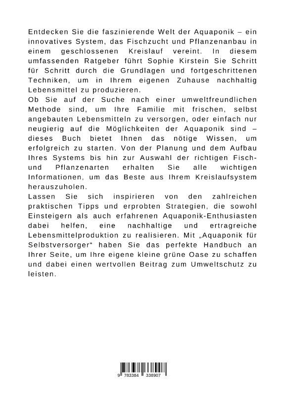 Entdecken Sie die faszinierende Welt der Aquaponik ein innovatives System, das Fischzucht und Pflanzenanbau in einem geschlossenen Kreislauf vereint. In diesem umfassenden Ratgeber führt Sophie Kirstein Sie Schritt für Schritt durch die Grundlagen und fortgesc...