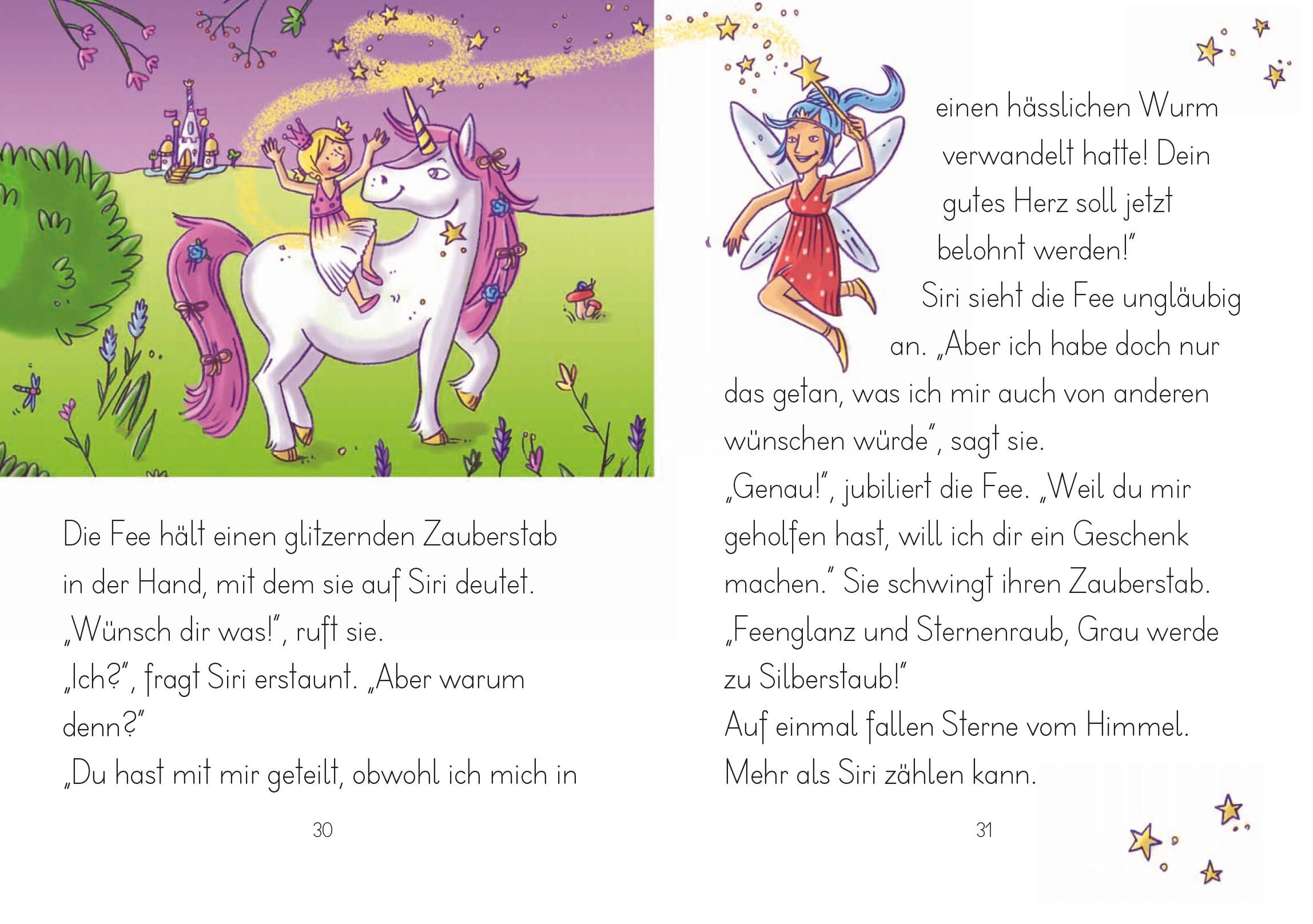 Prinzessin Siri hat ein Problem: Ihr Lieblingskleid ist schon grau und abgetragen. Damit kann sie unmöglich auf dem Ball tanzen! Einhorn Hanna hat eine Idee: die Blätter vom Goldbaum werden dem Kleid neuen Glanz verleihen. Zu allem Unglück werden die Blätter ...