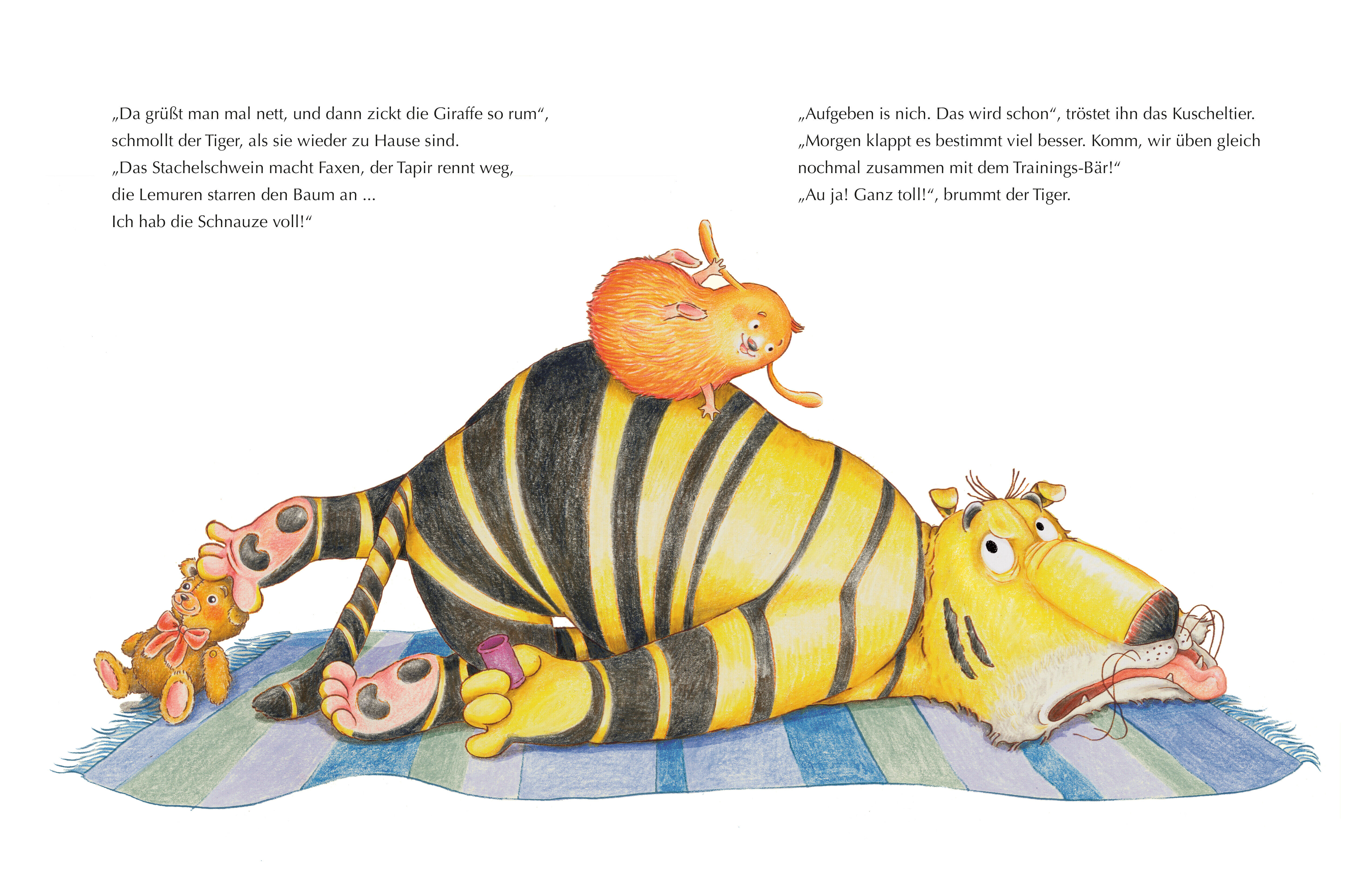 Ein Kuschelbuch für Kinder ab 3 Jahren - spielerischer Unterricht in Sachen Freundlichkeit, Rücksichtnahem und Höflichkeit! Der Tiger leidet an der Großen Unkuscheligkeit, immer meckert er nur herum. Die anderen Tiere gehen in Deckung, wenn er um die Ecke bie...
