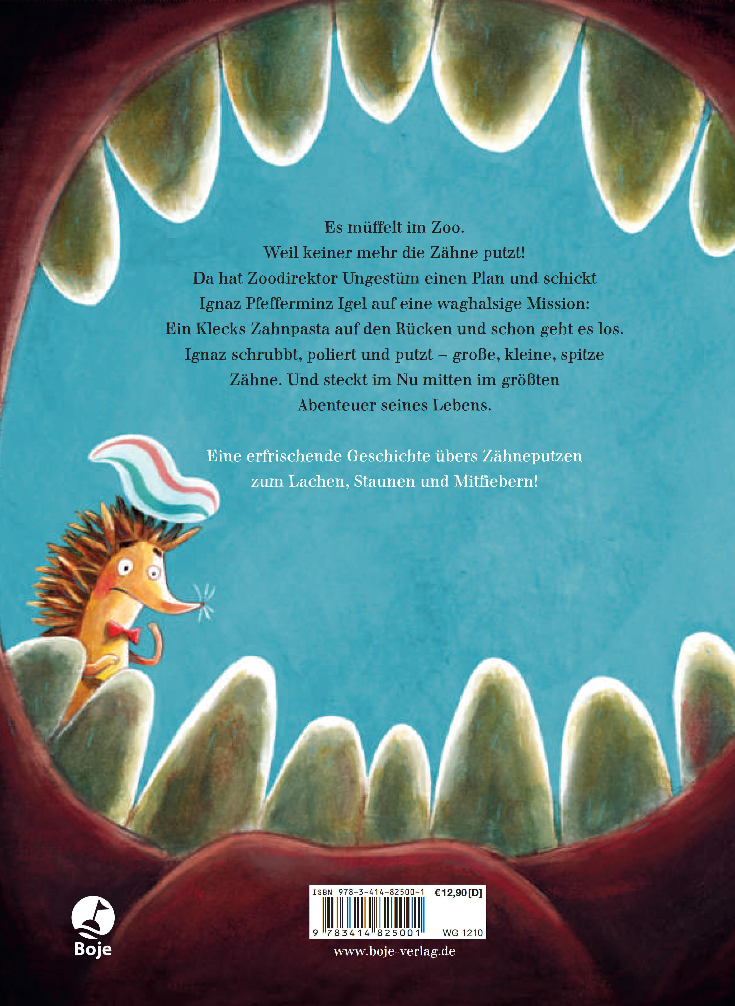 Es müffelt im Zoo. Weil keiner mehr die Zähne putzt! Da hat Zoodirektor Ungestüm einen Plan - und Ignaz Pfefferminz Igel eine waghalsige Mission: Ein Klecks Zahnpasta auf den Rücken und schon geht es los. Ignaz schrubbt, poliert und putzt - große, kleine und ...