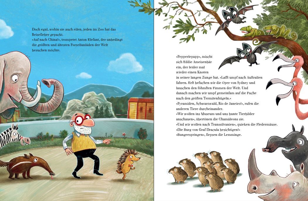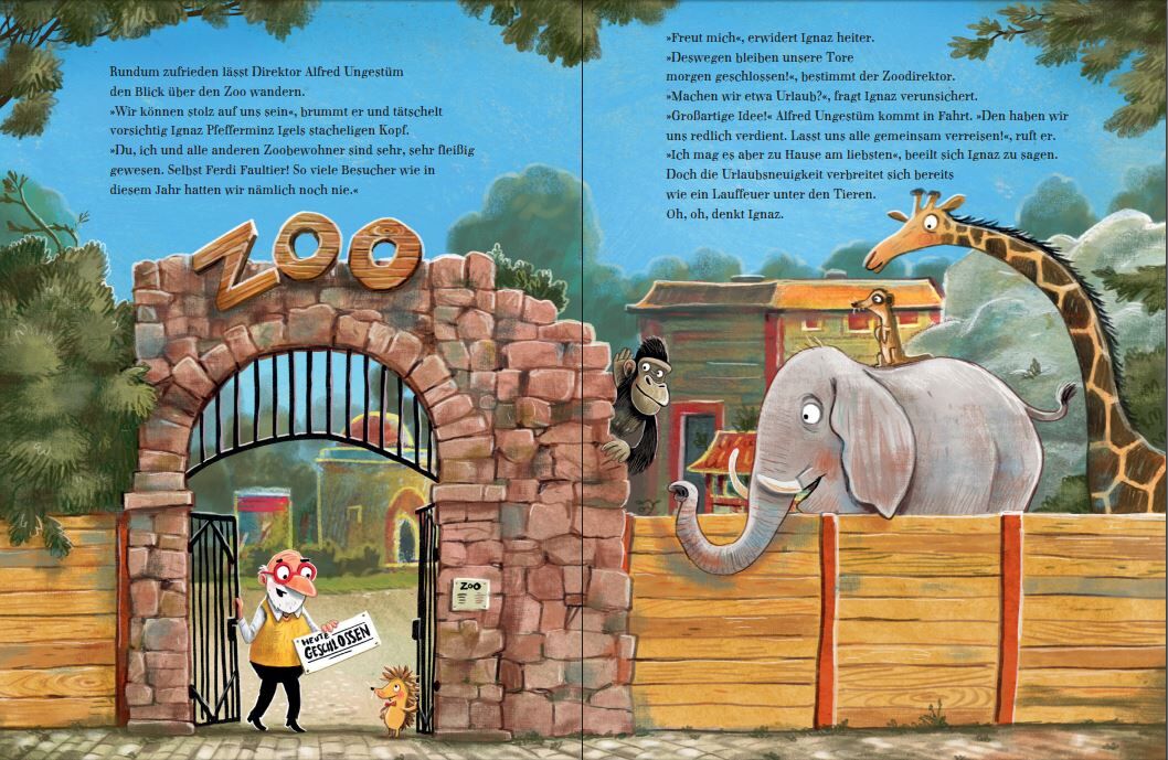 "Heute bleibt der Zoo geschlossen!", verkündet Zoodirektor Ungestüm freudig. "Wir fahren in den Urlaub!" Was für eine tolle Idee, finden die Zootiere und haben sofort ganz genaue Vorstellungen davon, wohin die Reise gehen soll: Gisela Giraffe möchte am liebst...