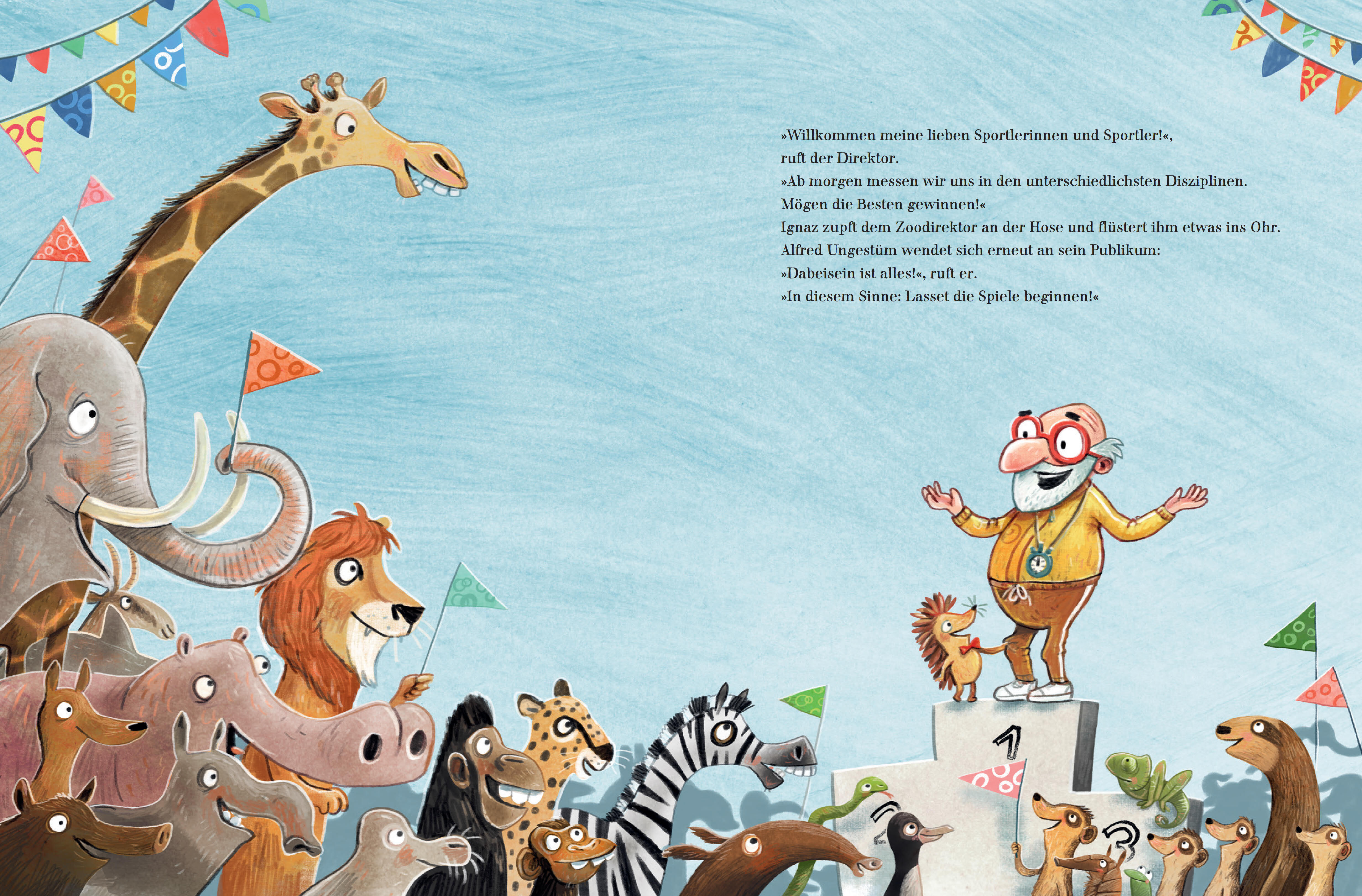 "Willkommen zu den großen Spielen!", ruft Direktor Ungestüm. Was soll das denn sein?, fragen sich die Zootiere. Na, ist doch klar: ein tierisch sportlicher Wettkampf. Aber das klingt einfacher, als gedacht: Beim 100-Meter-Lauf sprintet Eddie Ameisenbär aus Ve...