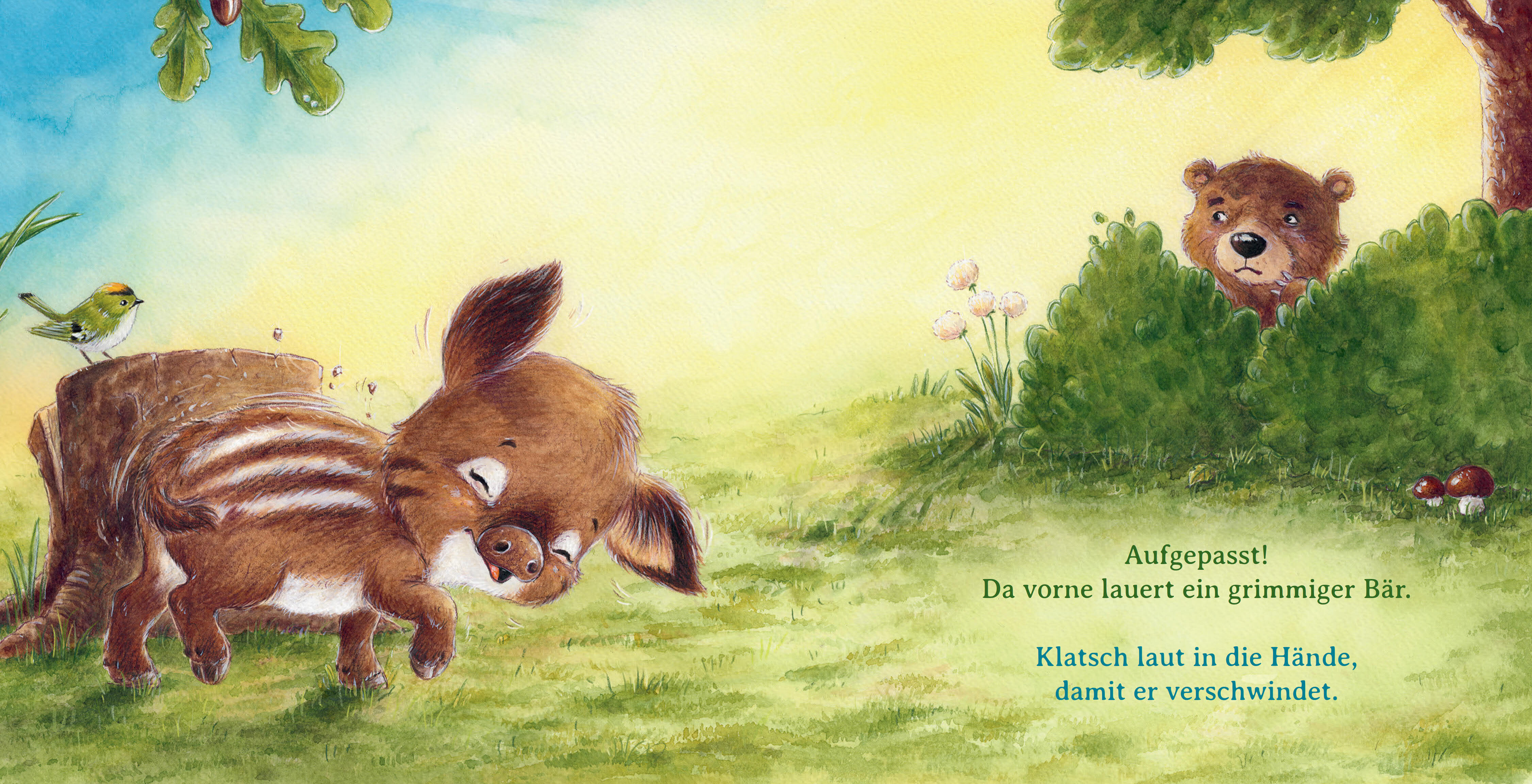 Der Wald liegt friedlich und verlassen da. Nanu, wo sind denn alle Tiere hin? Sei mucksmäuschenstill, dann kannst du sie entdecken - auch den kleinen Frischling. Er hat sich im Unterholz versteckt und weiß den Weg nach Hause nicht mehr. Hilfst du ihm, zurück ...