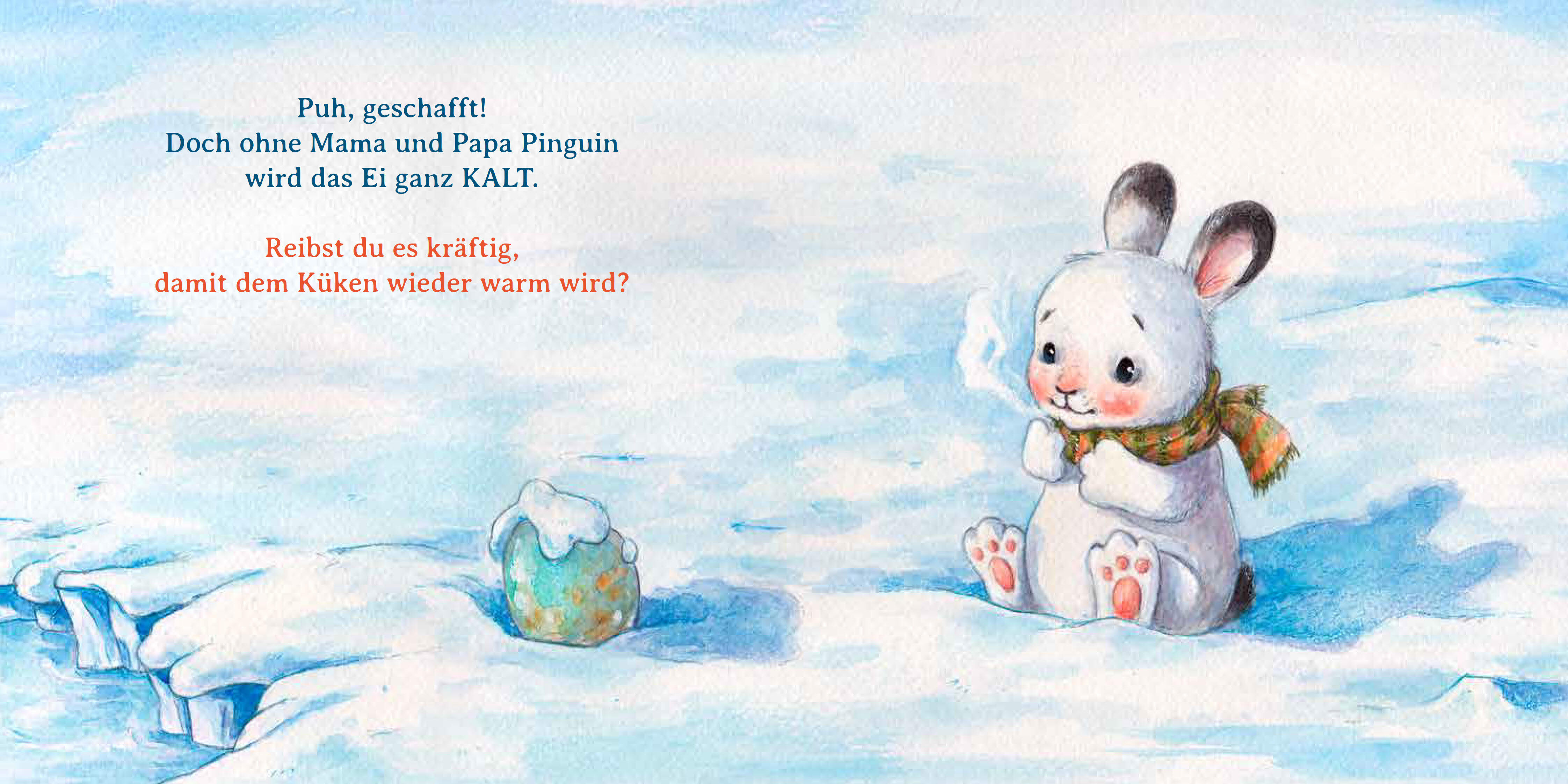 Die große Pinguinfamilie macht sich auf den Weg nach Süden, denn dort wollen sie ihre Küken ausbrüten. Doch plötzlich kullert ein kleines Pinguin-Ei seinen Eltern davon. Oh nein, jetzt ist es ja ganz alleine. Komm schnell und hilf dem Pinguinbaby beim Schlüpf...
