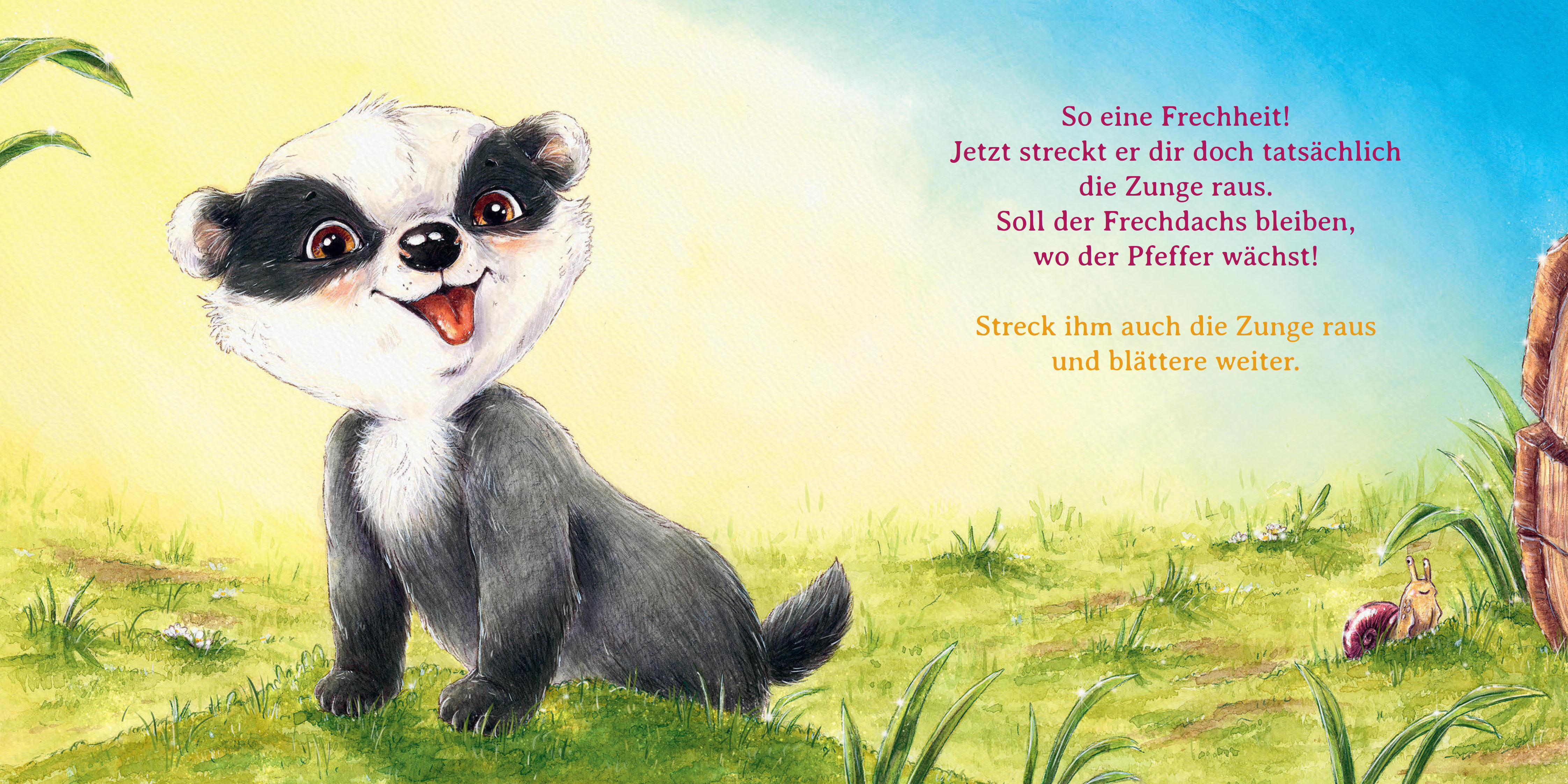 Die Sonne ist gerade über dem Wald aufgegangen, die Bienen summen und die Vögel zwitschern. Nur einer schläft noch: der kleine Dachs. Klopf an seine Höhle an, damit er aufwacht! Doch oh-oh, das war wohl keine gute Idee! Der kleine Langschläfer ist noch ziemli...