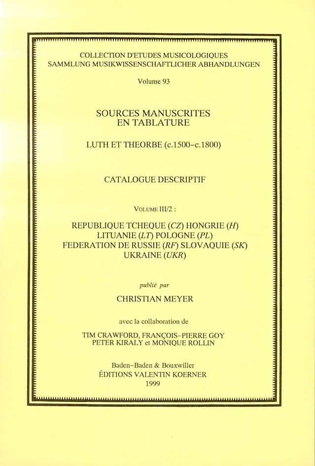 Der Band enthält die Beschreibung der handschriftlich überlieferten Lauten- und Theorben-Tabulaturen, die in den Bibliotheken Osteuropas und der Baltischen Staaten aufbewahrt werden. Damit setzt er die Reihe der bereits erschienenen Bände Sammlung musikwissens...