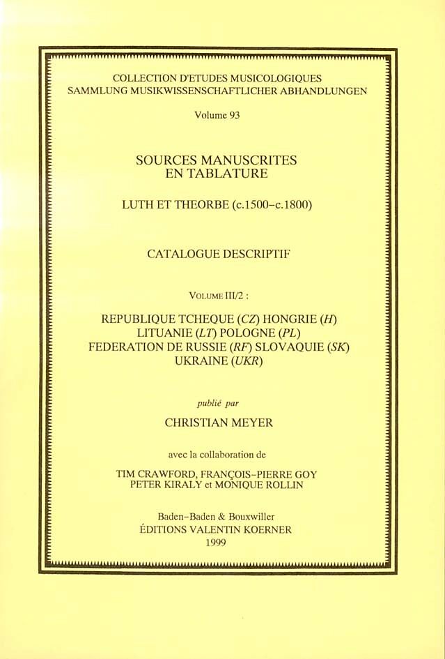 Der Band enthält die Beschreibung der handschriftlich überlieferten Lauten- und Theorben-Tabulaturen, die in den Bibliotheken Osteuropas und der Baltischen Staaten aufbewahrt werden. Damit setzt er die Reihe der bereits erschienenen Bände Sammlung musikwissens...