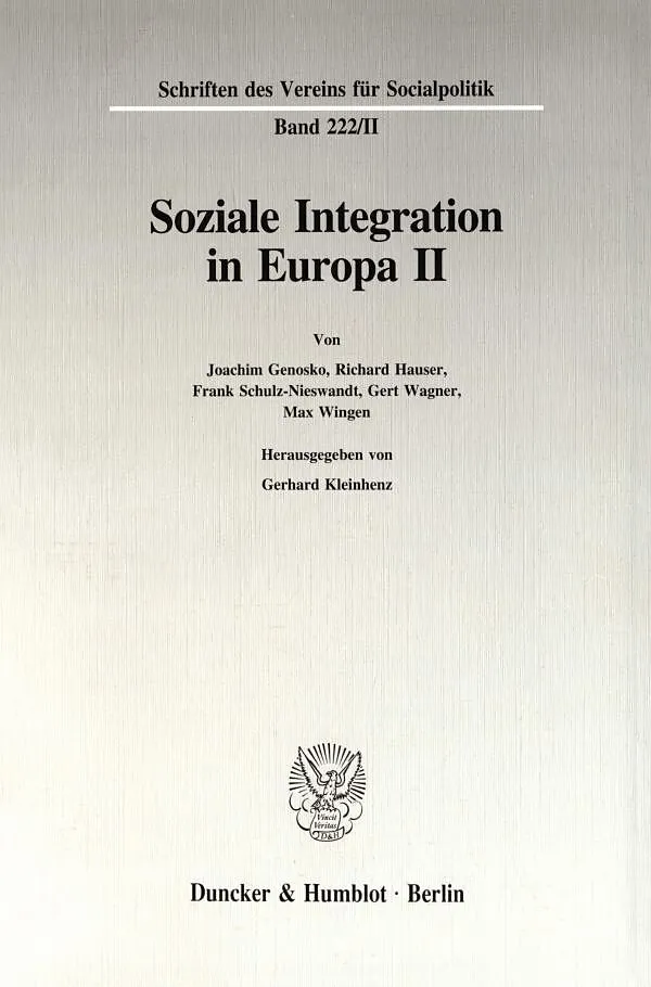 Der Ausschuß für Sozialpolitik in der Gesellschaft für Wirtschafts- und Sozialwissenschaften, Verein für Socialpolitik, hatte unter dem Eindruck der Verwirklichung des Binnenmarktes und der fortschreitenden Integration zu einer Europäischen Wirtschafts- und Wä...