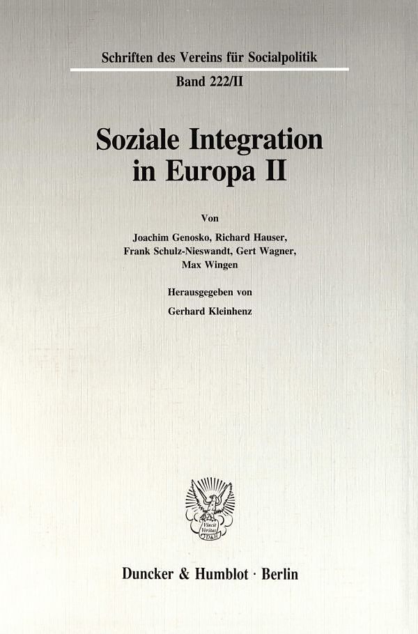 Der Ausschuß für Sozialpolitik in der Gesellschaft für Wirtschafts- und Sozialwissenschaften, Verein für Socialpolitik, hatte unter dem Eindruck der Verwirklichung des Binnenmarktes und der fortschreitenden Integration zu einer Europäischen Wirtschafts- und Wä...