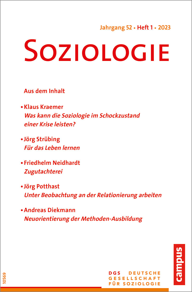 Die »Soziologie« ist das Forum der Deutschen Gesellschaft für Soziologie (DGS). Die Zeitschrift fördert die Diskussion über die Entwicklung des Fachs, informiert über die Einbindung der deutschen Soziologie in ihren europäischen und weltweiten Kontext und dien...