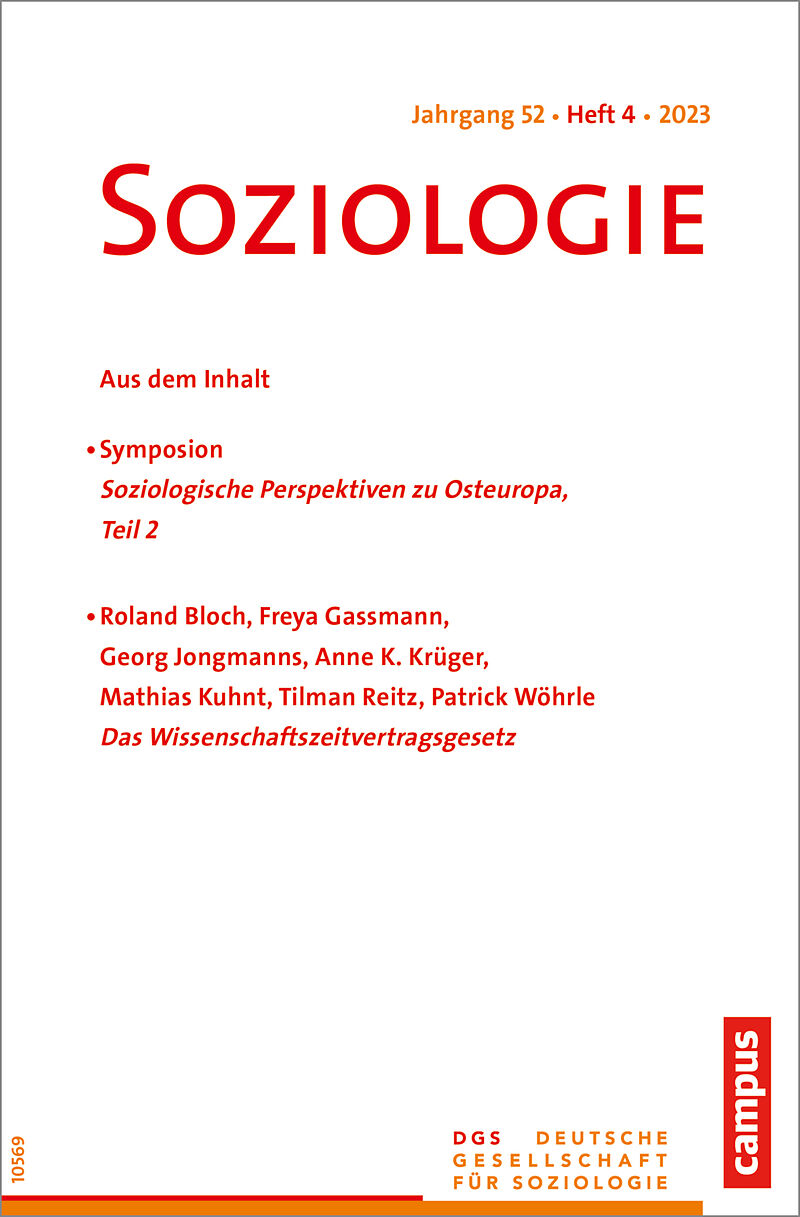 Die »Soziologie« ist das Forum der Deutschen Gesellschaft für Soziologie (DGS). Die Zeitschrift fördert die Diskussion über die Entwicklung des Fachs, informiert über die Einbindung der deutschen Soziologie in ihren europäischen und weltweiten Kontext und dien...