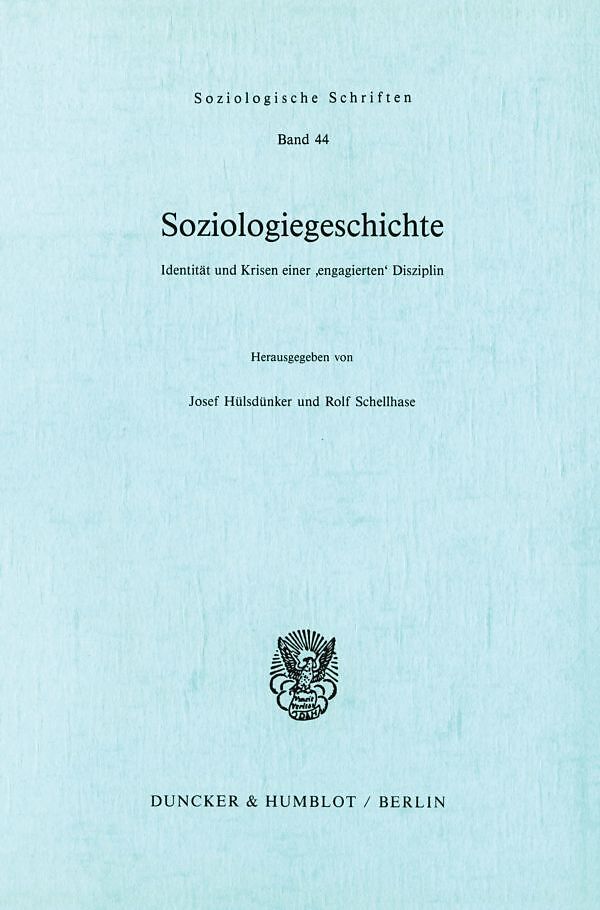 Inhalt Inhalt: J. Hülsdünker / R. Schellhase, Zur Aktualität der Soziologiegeschichte - O. Neuloh, Identität und Krisen der Soziologie und Sozialforschung im sozialen Wandel - H. Schuster, Die deutsche Betriebssoziologie zwischen den Weltkriegen. Überlegungen ...