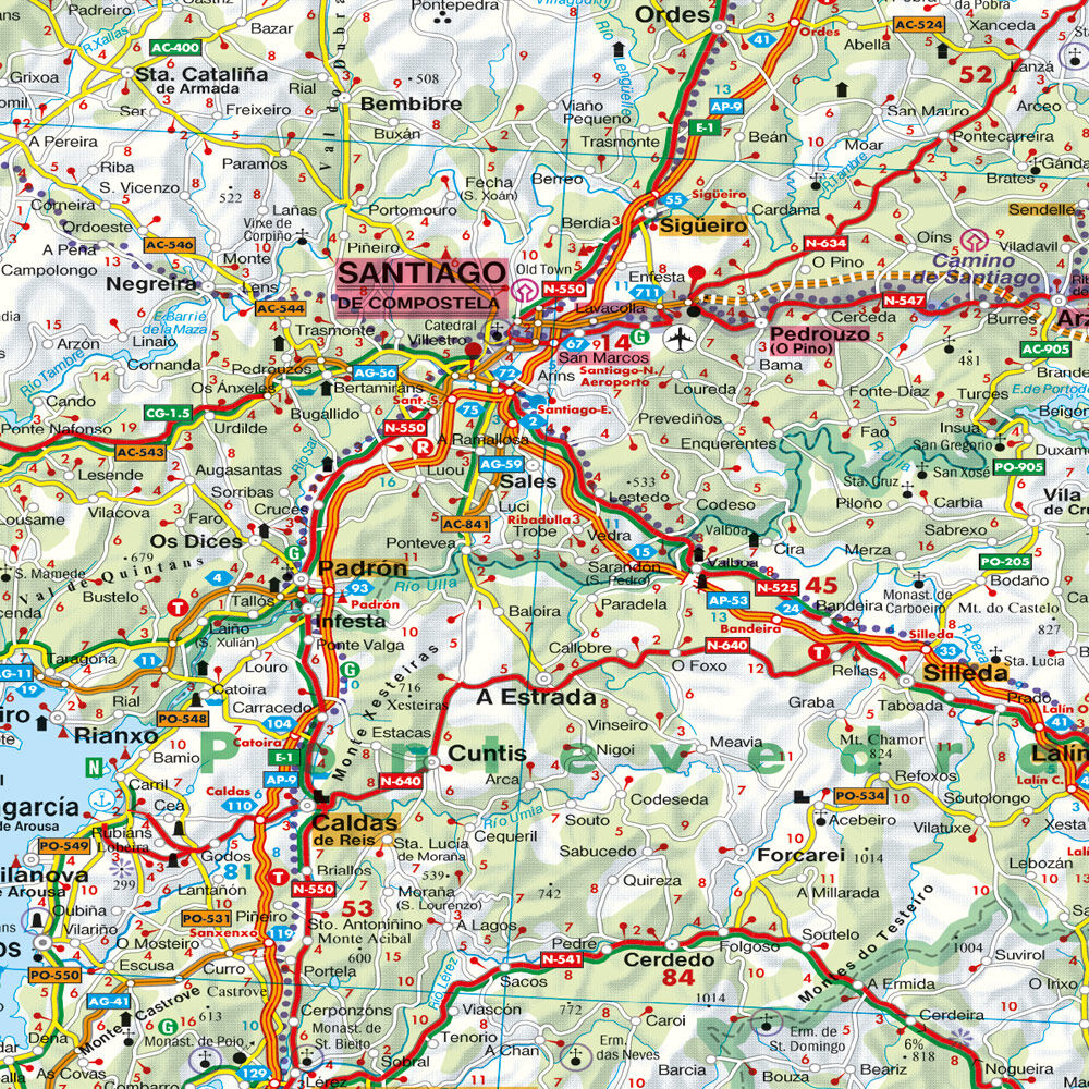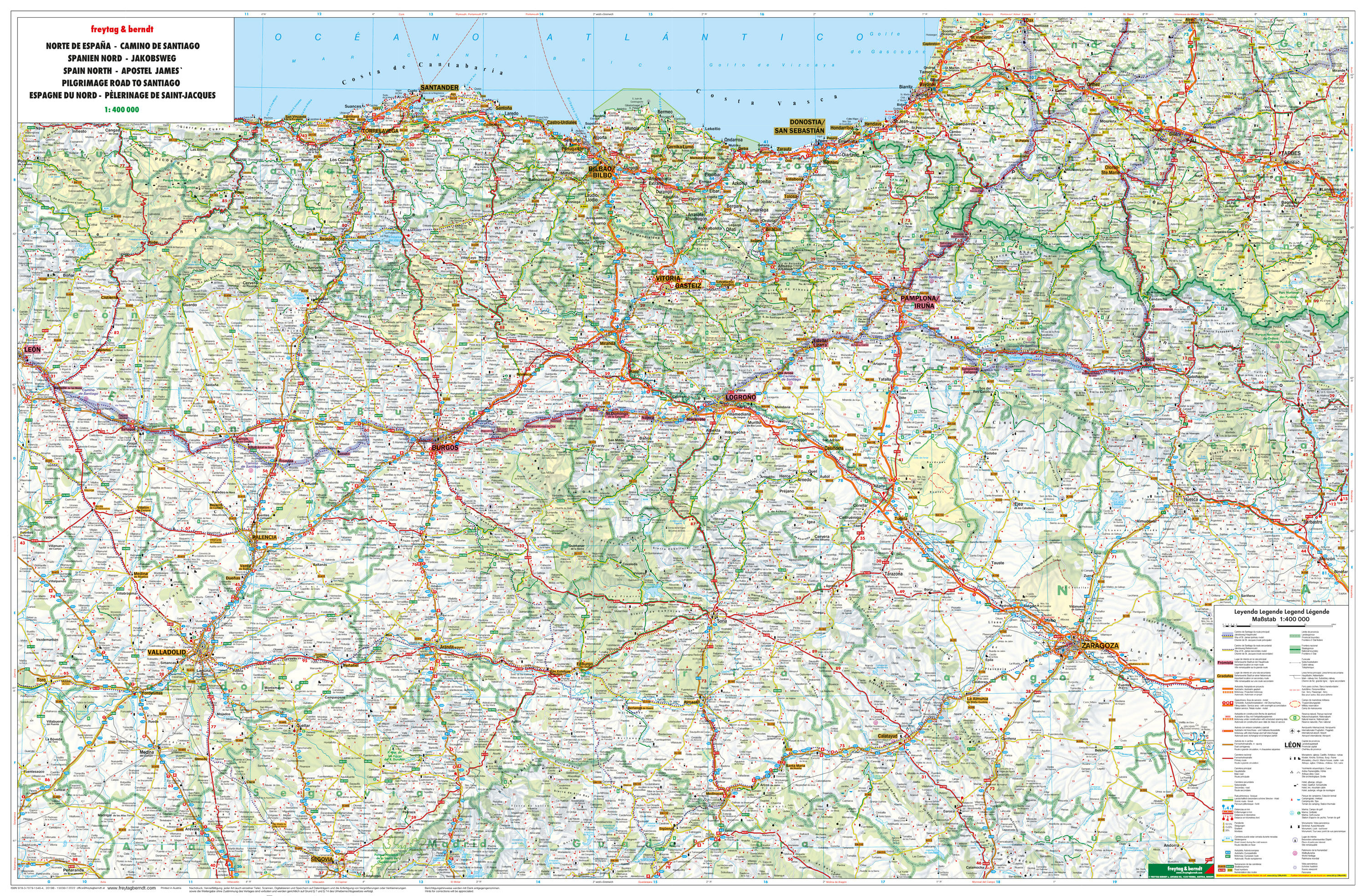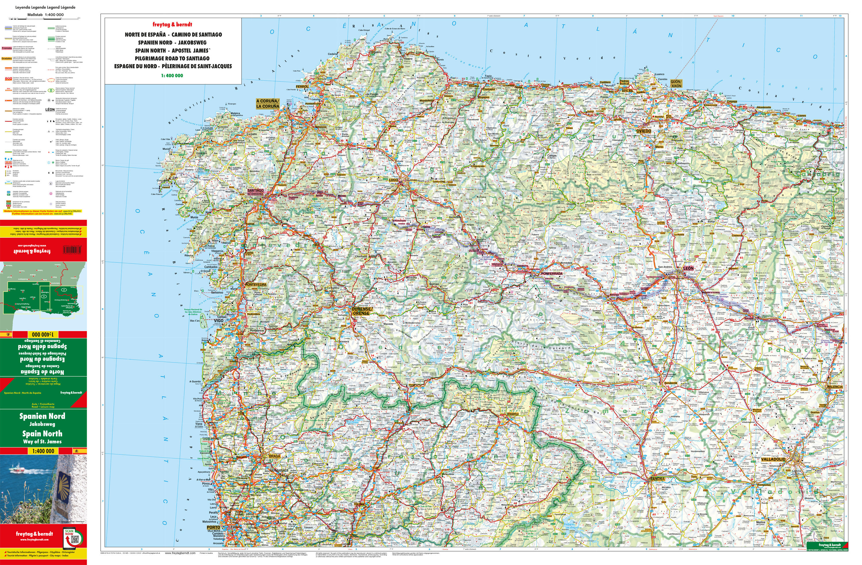 Mit der Straßenkarte Spanien Nord - Jakobsweg im Maßstab 1:400.000 finden sich Urlauber und Pilger die in der Region unterwegs sind bestens zurecht. Das weit verzweigte Straßennetz ist exakt abgebildet, Entfernungen und viele Ausflugsziele sind in der Karte ei...