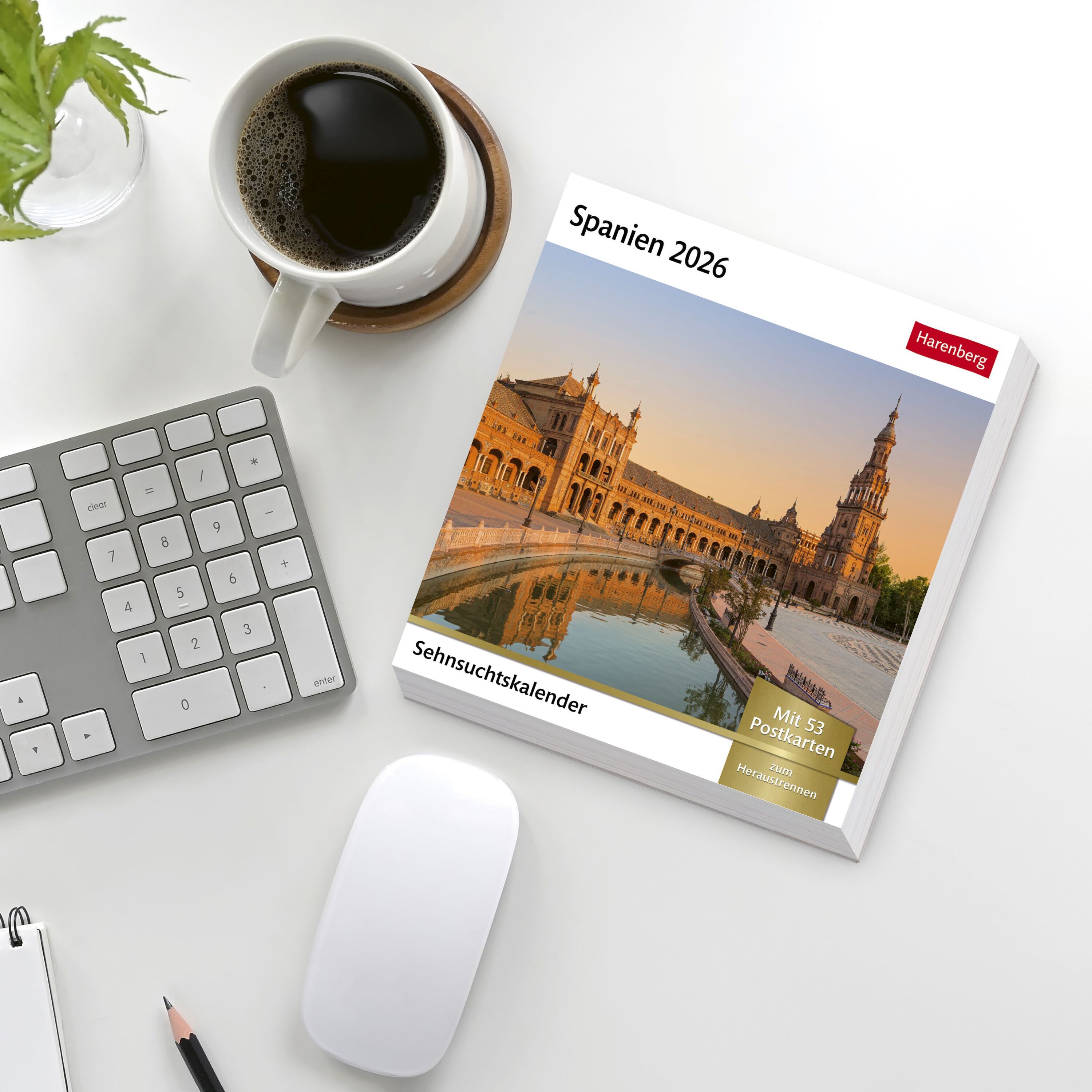 Spanien Sehnsuchtskalender 2026 - Wochenkalender mit 53 Postkarten